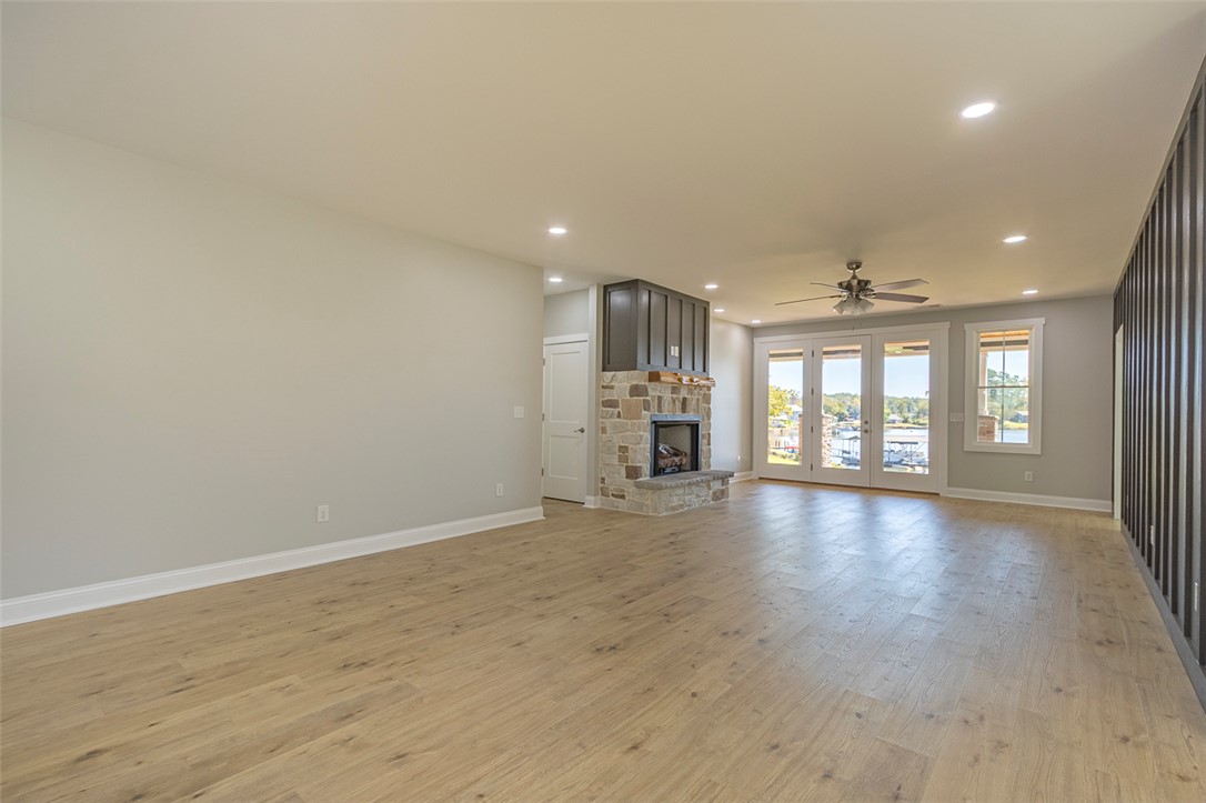 WHAT A VIEW!! Welcome to 45 Bigmouth Cove, located on the BIG water, the largest part of the lake. Walk out the front door right to the water. This spacious open floor plan, New 4 Bedroom 3 bath home is sitting on over half an acre is ready for its new owner. This home has many custom features, enter the home through the mud room leading straight to the kitchen where you will find ample space for family/friend gatherings. The spacious pantry is located on the opposite from the mud room. Very large Front porch extending from one side of the home all the way to the other side with ceiling fans and recessed lighting. Master bedroom is located on the main level of the home along with a second bedroom and bathroom. Upstairs you will find two bedrooms, bathroom, office/study room and a bonus room. Irrigation system is installed pumping water from the lake, down at the water you will find a dock and a seawall that will last a lifetime. No restrictions, No HOA, No corp, new city water tap, home is pre-wired for fiber optic high speed internet and cable. The hard work is done here. Call Today to get your showing in on this beautiful home!