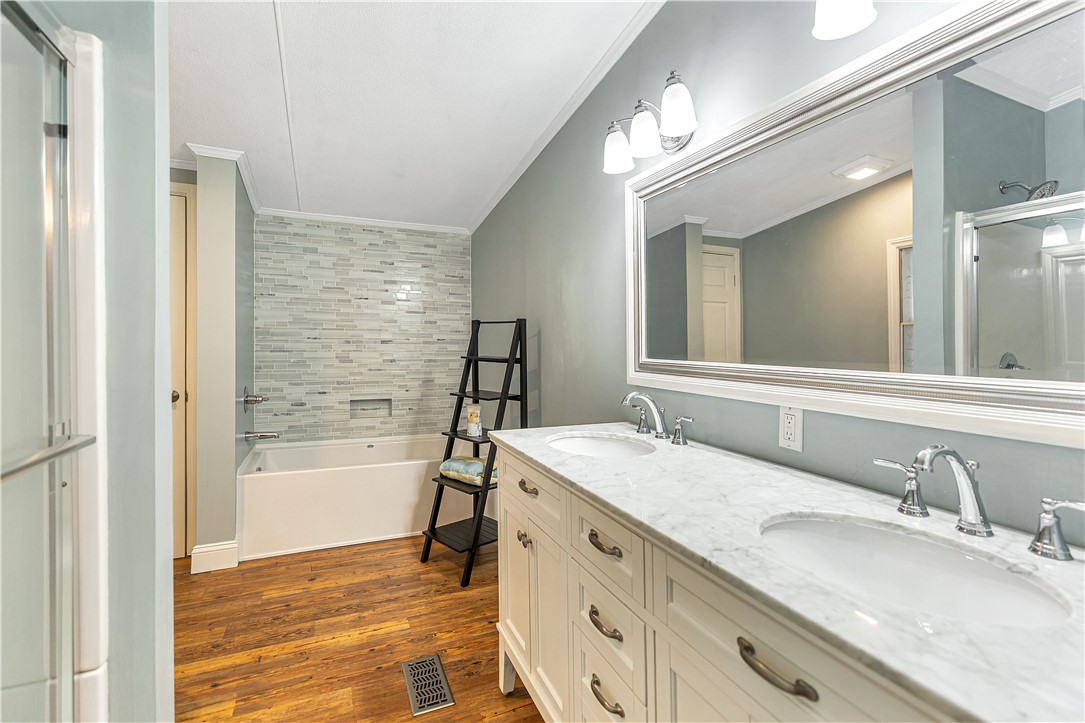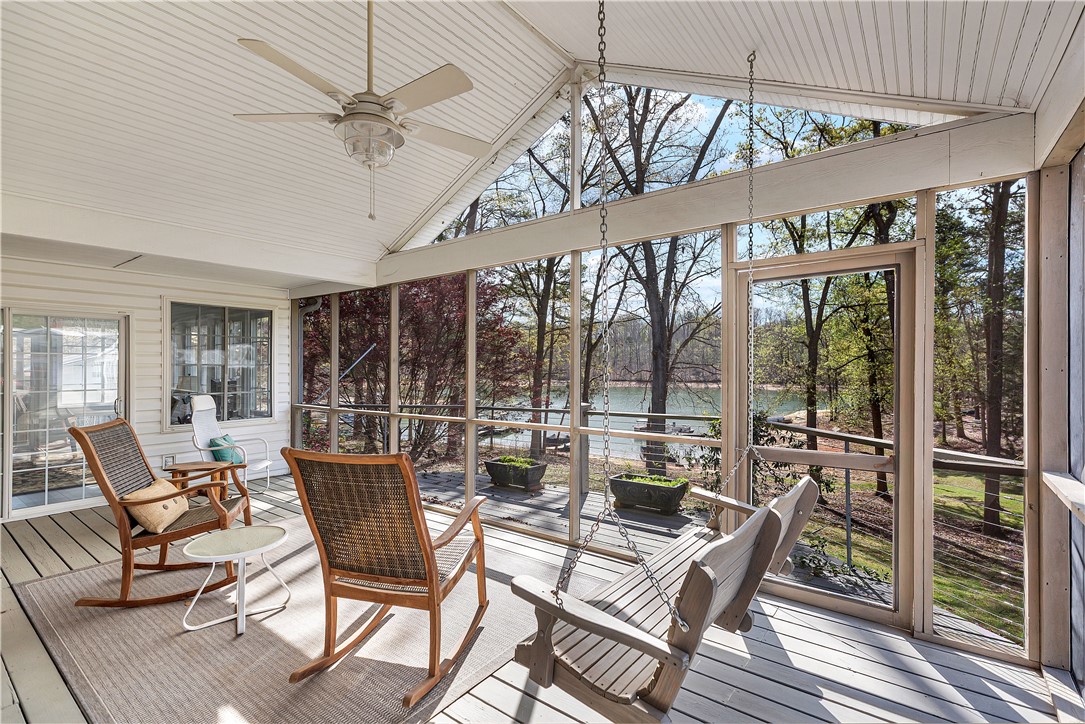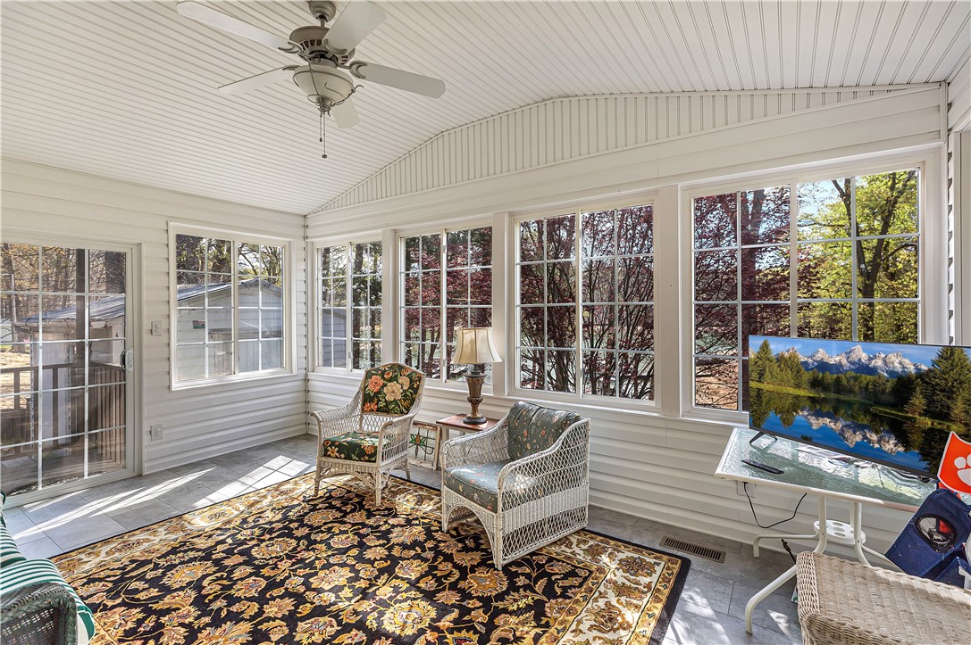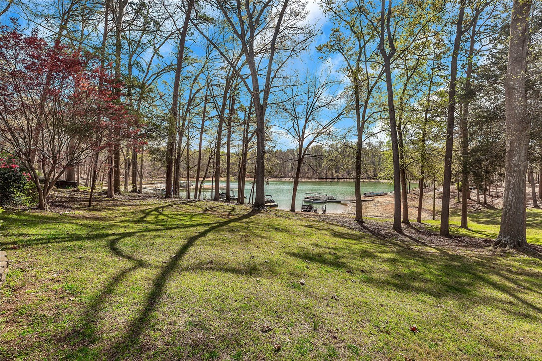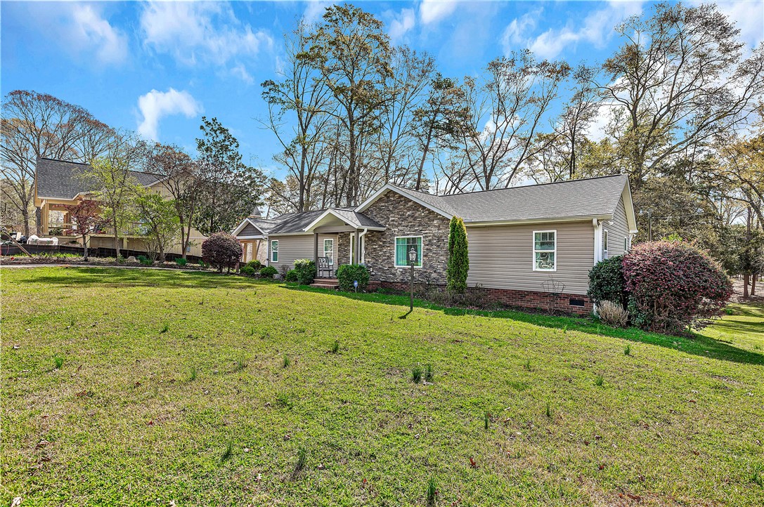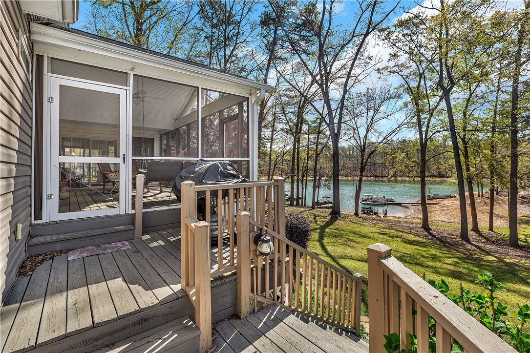Lake Hartwell Waterfront Home with Dock In Place. Situated on a .33 acre level lot with lake views in Merry Hill Estates in calm cove just off the main channel. Located just minutes from I-85 and Anderson for shopping, dining , and medical. This three bedroom and two full bath single level home has a nice split bedroom plan with large screened porch overlooking the lake. The welcoming front porch with stone surround draws you in to the open dining and living room with gas fireplace, cathedral ceilings, and LVP flooring throughout. Cooks will love that the kitchen is open as well to the living area with additional seating at bar. Nice laundry room located off kitchen. Master suite is quite spacious with walk-in closet. The bath has double vanity, walk-in shower and separate tub. Additional bedrooms are also spacious and additional full bath was designed for handicap access. Outdoors enjoy lakeside living on the screened porch or stroll to the dock for lake access. Included is a storage shed to house lake toys. New roof, windows, gutters, HVAC, flooring, kitchen & baths in 2017. Vacation rental is allowed. No HOA.