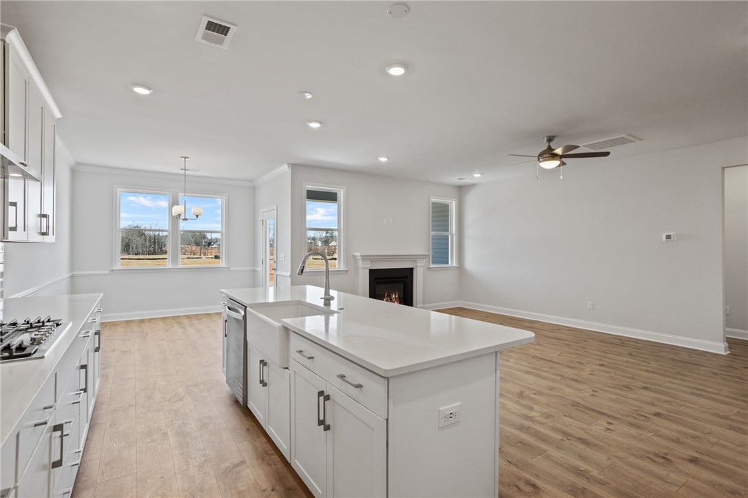 The Oceana floor plan combines ranch-style convenience with elevated finishes and flexible living space. Offering 3 bedrooms and 2 baths on the main level plus Oak Tread stairs that lead to an upper level with recreation room. This home provides approximately 2,550 sq ft of thoughtfully designed space. The kitchen stands out with quartz countertops, Smart Whirlpool® appliances, gas cooktop, wall oven/microwave combo, upgraded soft-close cabinetry, farmhouse sink, tile backsplash, stainless exterior-vented hood, and a butler’s pantry for added storage. A gas fireplace anchors the open living area, flowing into both formal dining and breakfast spaces. Enjoy outdoor living on the covered porch with extended patio. Additional features include laminate flooring in main areas, tile in baths and laundry, and a gas tankless water heater. Located in Anderson Oaks with tree-lined homesites and select basement plans. Convenient access to Easley dining and shopping, Wren schools, Downtown Greenville, and Clemson University. Community amenities include playground and fire pit gathering area.