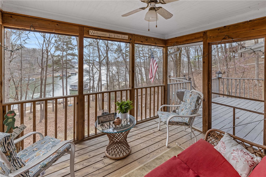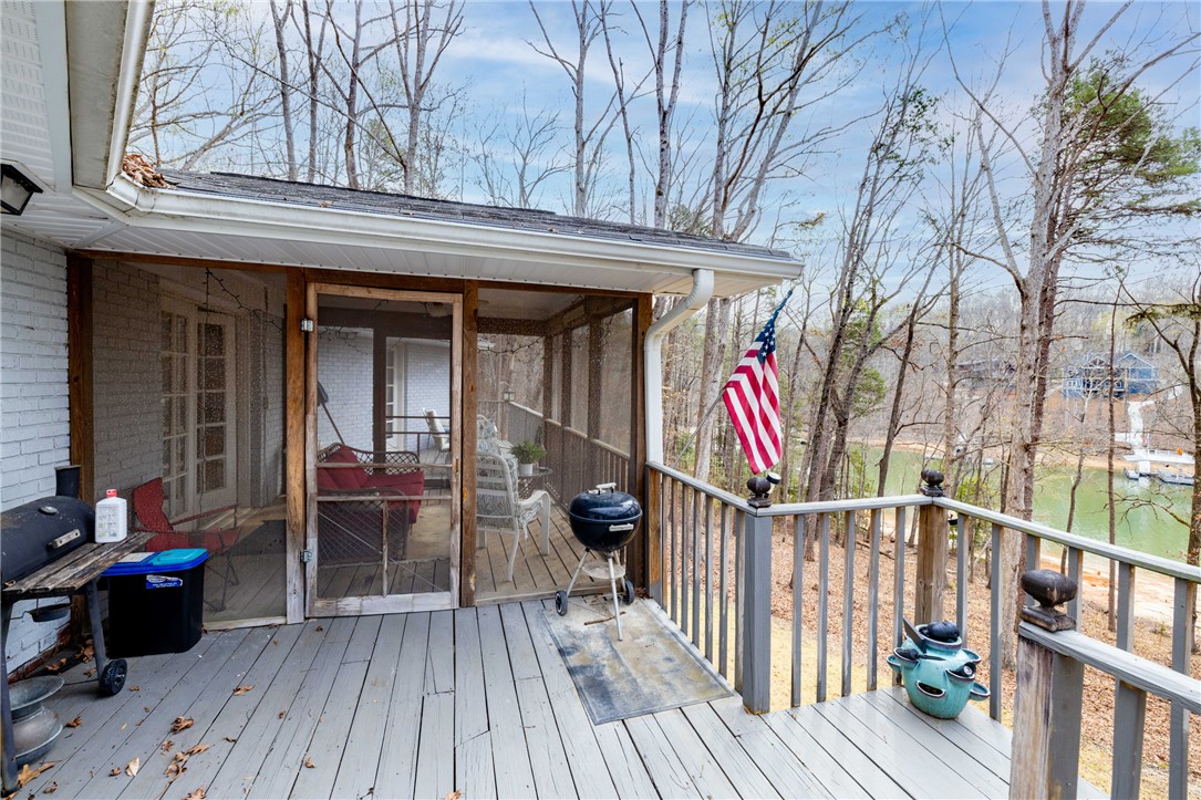 Weekend getaway on Lake Hartwell with great water and covered dock in place. Driveway is steep but you are closer to the shoreline so you can enjoy the peace and tranquility of the lake. Home has several screened porches which offer truly amazing views of the lake. Deep water access for great fishing, boating and water sports. Home has two bedrooms each with their own bathroom. Open living and kitchen area with an expansive brick fireplace which adds character to the home. Downstairs is a bonus room which is currently being used as a third bedroom. The sellers are leaving all furniture, boat and golf cart which makes it easy for you to start enjoying the lake. You will also find an amazing 18-hole golf course in the community which includes a pro-shop and the Overlook restaurant. Everything you need to enjoy the activities on the lake plus hiking and nature are found in this location. Property is located between Atlanta and Greenville, plus an easy drive to the Blue Ridge Mountains. Chickasaw Point is a great place to live and play!