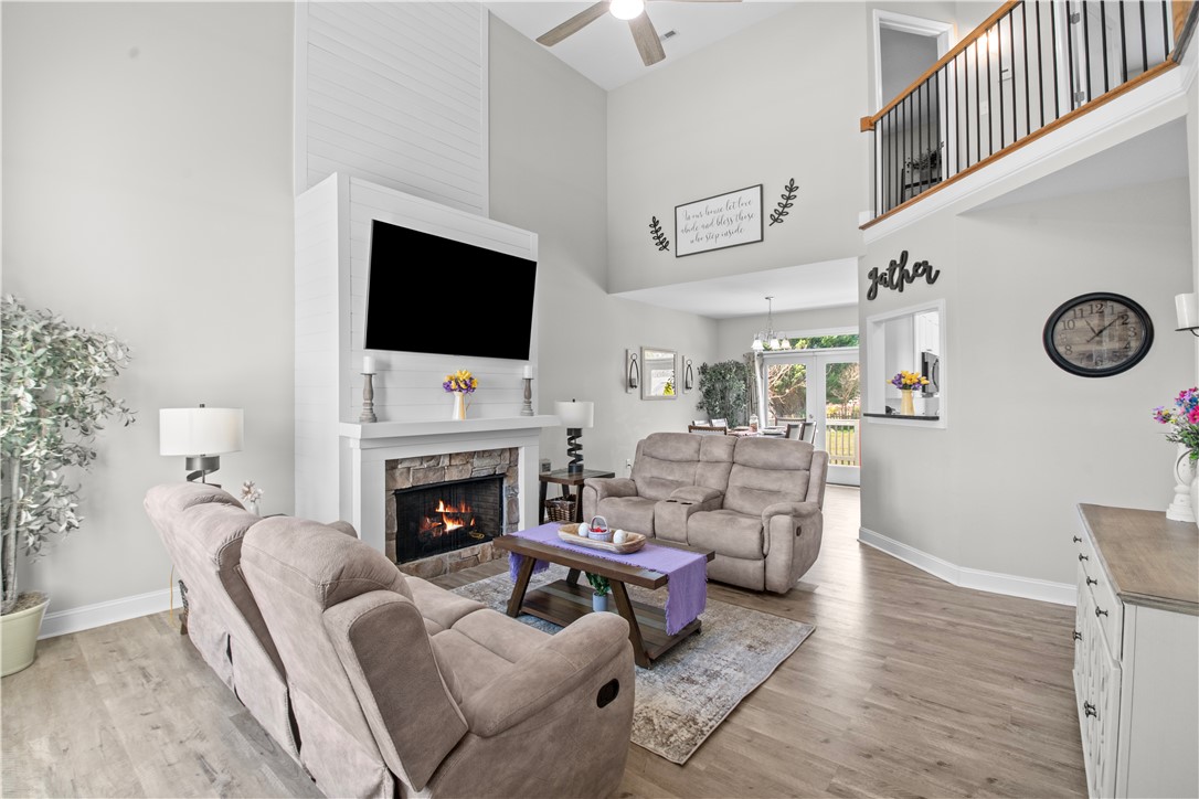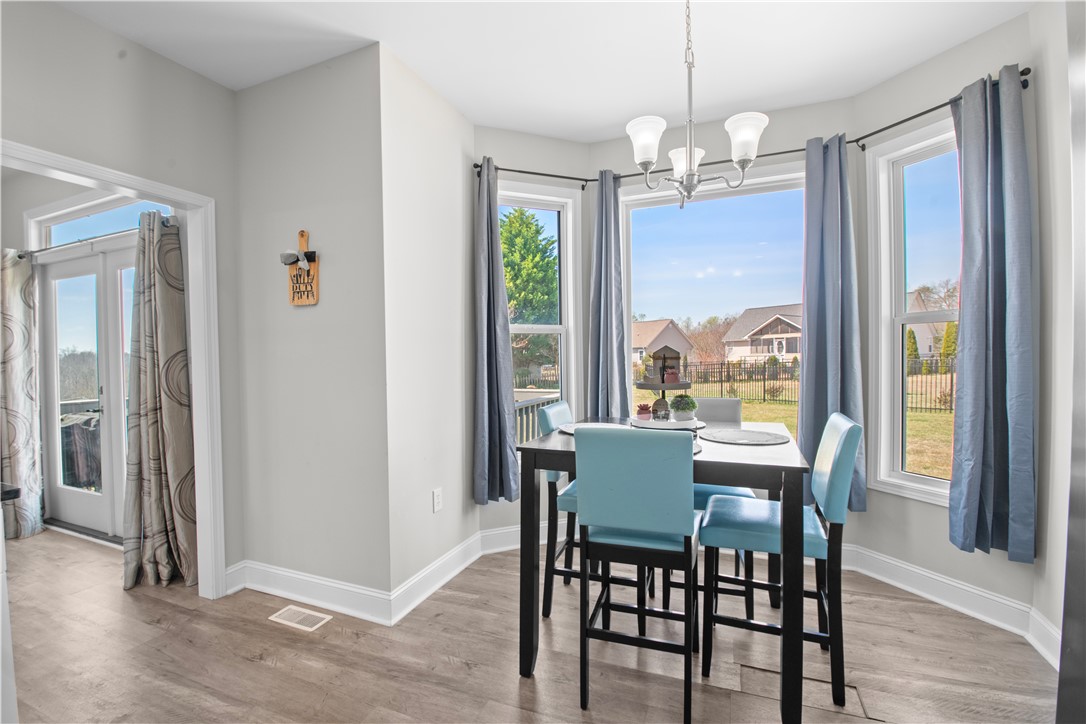 Welcome to this Beautiful home in a lovely neighborhood. This four bedroom two and half bath home has so many wonderful features. The Living room is open to dining room with an amazing fireplace with shiplap running all the way to the ceiling of the second floor with open cathedral ceiling and the open stairs and pretty railing lends this home to so many family picture settings. There is a large dining room that leads to the back deck and into the kitchen with a breakfast nook and bay window. The Kitchen has stainless appliances an island and plenty of storage for all you cooking needs. The Primary bedroom is around the corner and has lots of natural light and a wonderful bathroom with double sinks, granite countertops, garden tub, huge step in shower and a walk-in closet. The laundry is located on the main level and access to the garage is just steps away. Upstairs are three very nice size bedrooms and plenty of storage with large closets and additional easy access to attic areas. Another full bath tops off the upstairs with granite and tub shower combo. Stepping out onto the large back deck is a pretty winter mountain view and a great yard for hanging out and gardening. Location is prime just minutes to downtown Greenville, Travelers Rest and a short ride to the mountains and multiple state parks.