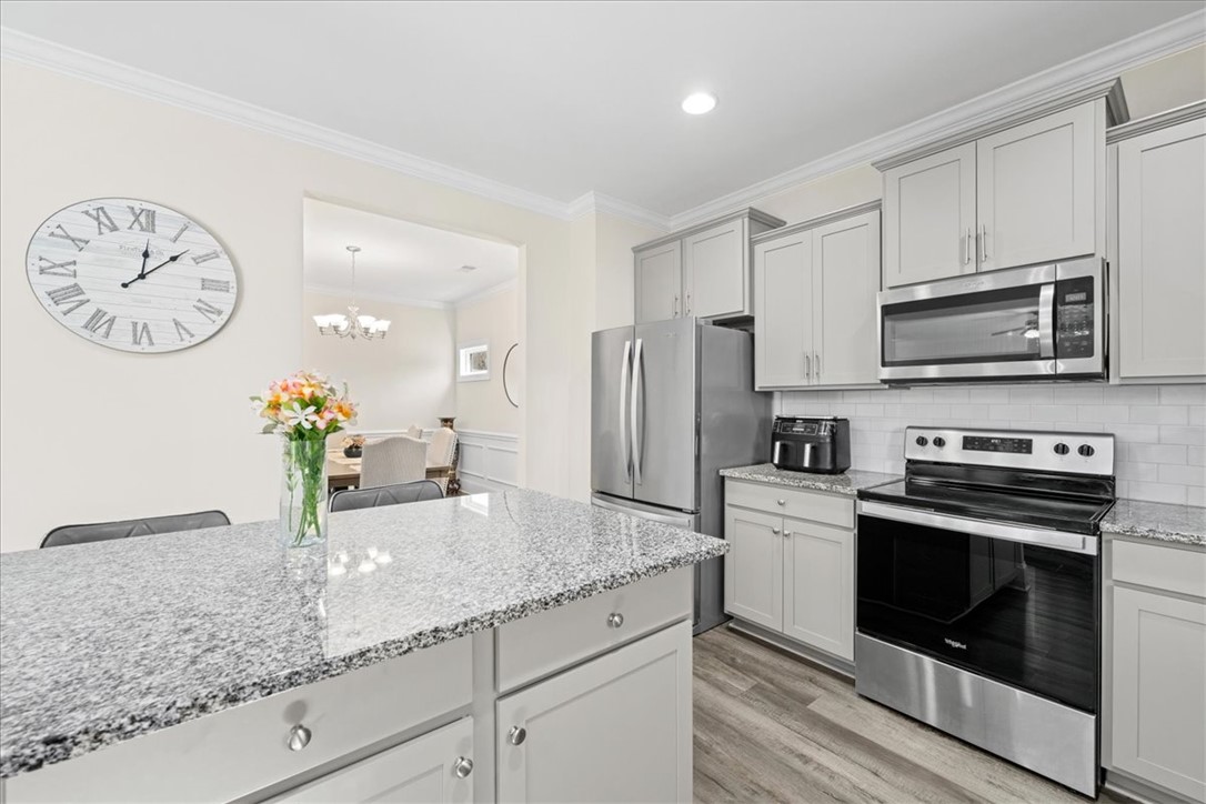 Welcome to this beautifully maintained and meticulously upgraded home in the desirable Tokeena Trail subdivision just outside historic Seneca, SC! Built in 2022, this energy-efficient, low-maintenance residence offers approximately 3,040 square feet of thoughtfully designed living space, featuring 5 bedrooms and 3 full bathrooms. Step inside to find stunning Galveston Oak luxury vinyl plank flooring throughout the main living areas, including the foyer, kitchen, living room, dining room, full bath, laundry room, and garage entry. Also, there's an optional office space on the main level! The heart of the home is a sleek, modern kitchen equipped with a stainless steel appliance package—refrigerator, electric range, dishwasher, and built-in microwave—perfect for both everyday living and entertaining.The upgraded Advanced Estate Series Trim Package adds elegant decorative wainscoting, enhancing both style and character. Additional features include: a Full Bathroom downstairs, elongated toilets and upgraded plumbing fixtures, Shaker-style stone gray cabinetry, adult-height vanities, and beautiful 3 cm Luna Pearl granite countertops. Enjoy outdoor living on the spacious deck just off the sliding glass doors—ideal for relaxing or hosting guests. The home also includes a freshly painted 2-car garage, tankless gas water heater, and a widened concrete driveway with decorative stamped brick detailing, along with a custom side walkway. Tokeena Trail offers a welcoming community atmosphere with newer homes, low-maintenance living, low taxes, and excellent schools. Conveniently located just minutes from downtown Seneca and less than 10 miles from Clemson University, this home provides easy access to everything the Upstate has to offer. Outdoor enthusiasts will love being close to the Blue Ridge Mountains, as well as Lake Keowee, Lake Jocassee, Lake Hartwell, and the Chattooga River. From hiking and waterfalls to boating, fishing, and sporting events, recreation is always within reach. Plus, enjoy the charm and energy of downtown Seneca, including the popular Ram Cat Alley, featuring local dining, shopping, and community events.This move-in-ready home combines modern comfort, stylish upgrades, and an unbeatable location—don’t miss your chance to make it yours!