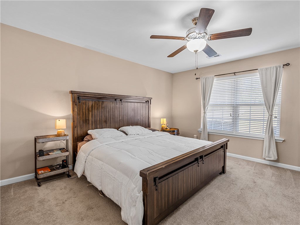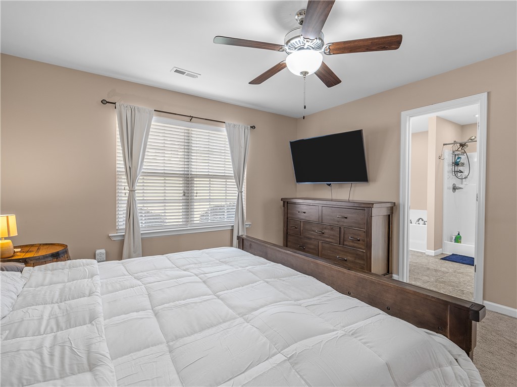 Tucked against peaceful green space with a creek backdrop, this open floor plan home offers a rare combination of privacy, functional design, and everyday livability in Anderson County near TL Hanna High School. Inside, the spacious living, kitchen, and dining areas connect seamlessly, creating a true open-concept layout that feels both comfortable and expansive. The split-bedroom design places the primary suite on one side of the home, while secondary bedrooms are positioned on the opposite wing, offering privacy and flexibility for guests, work-from-home setups, or multi-generational living. The primary suite is thoughtfully separated, while the additional bedrooms share convenient access to a full bath. Upstairs, a large loft provides a versatile second living area ideal for a media room, office, playroom, or private retreat. Step outside to a deck overlooking natural green space and a creek, creating a peaceful setting rarely found at this price point. The backyard offers a sense of separation and privacy while still being part of an established neighborhood. Located just minutes from shopping, dining, and daily conveniences, this home delivers the balance many buyers are searching for: a quiet setting with easy access to everything. If you are looking for an open concept home with split bedrooms, a private backyard, bonus living space, and a natural setting, this home stands out. Call today for your private showing!