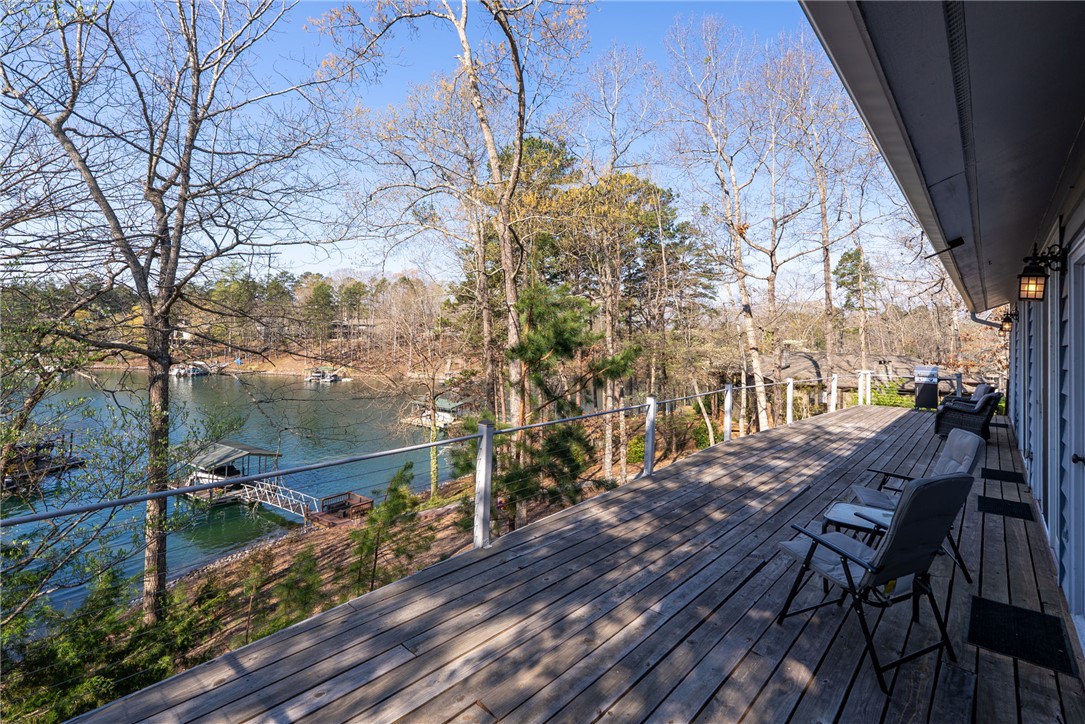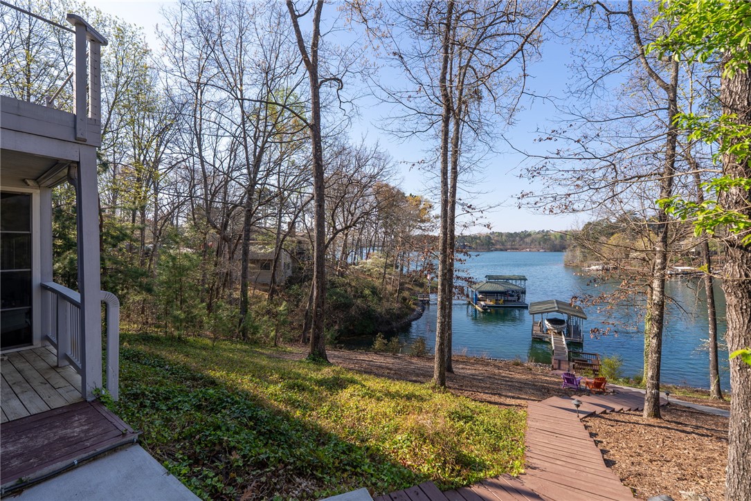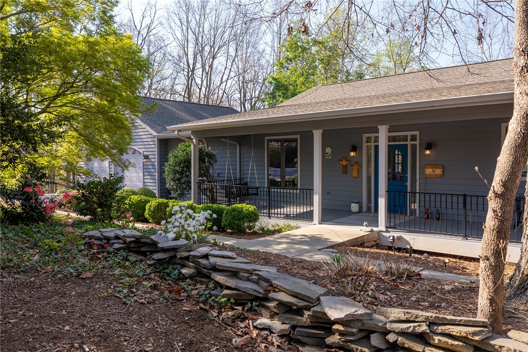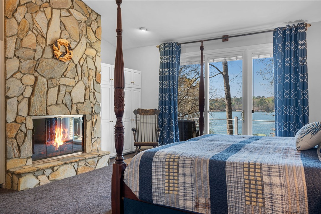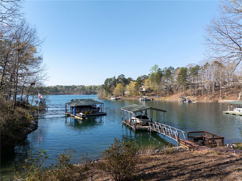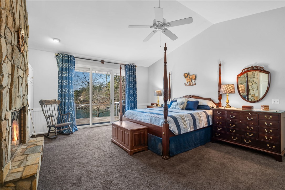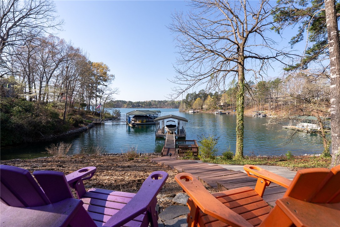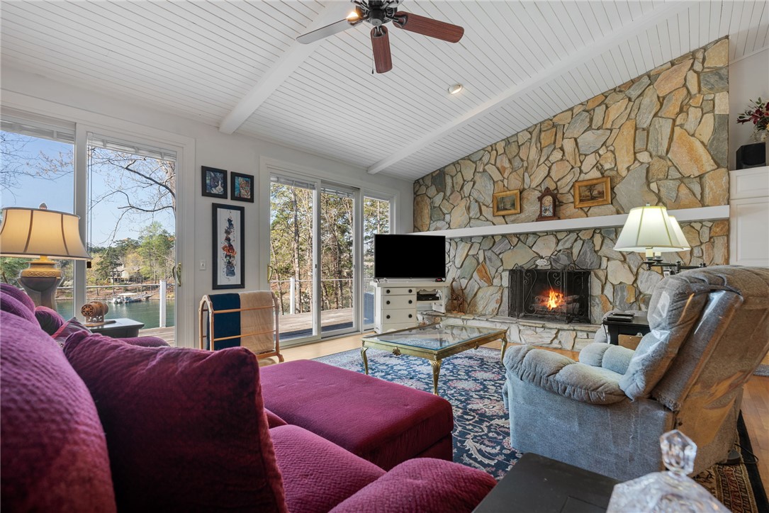 Set in the amenity-rich community of Keowee Key, this inviting waterfront home blends classic charm with spacious, easy lake living. A full-length covered front porch welcomes you in, while inside, vaulted ceilings and a striking floor-to-ceiling stone fireplace anchor the bright main living area. A wall of glass doors fills the space with natural light and showcases peaceful water views. The kitchen flows seamlessly into the dining area and features an island, generous counter space, and ample cabinetry—ideal for everyday living and entertaining. The main-level primary suite offers privacy, its own stone fireplace, exterior access, built-ins, a walk-in closet, and a spacious bath with double vanities, jetted tub, and walk-in tile shower. Just down the hall from the primary bedroom is the laundry room for added convenience. On the opposite end of the living room is a second main level guest bedroom, full hall tile bath, office and craft room plus an oversized two car garage with its own water closet. The terrace level adds flexibility with an additional third guest bedroom and full bath, separate den, kitchenette, and abundant storage. An expansive all-season porch with EZ Breeze windows spans the lower level, providing year-round enjoyment of lake views. Outside, a path leads to a covered dock with boat lift on over 120-feet of Lake Keowee shoreline. A connected lakeside seating area is perfect for dining or relaxing while overlooking the water. With two driveways for ample guest parking, this warm and welcoming home is an exceptional opportunity to enjoy waterfront living. Don't miss the 700-square foot climate controlled workshop located on the rear left of the home. With an independent entrance, windows and ventilation, this unique find is a wood-workers dream come true, and the home also features a roof with a 50-year transferable warranty, installed in March 2026. Keowee Key offers a true resort-style lifestyle with an impressive range of amenities designed for both relaxation and activity. Residents enjoy an 18-hole championship golf course, tennis and pickleball courts, a state-of-the-art fitness and racquet center with indoor pool, and multiple outdoor pools. The community also features multiple marinas with boat slips and rentals, scenic walking and leisure trails, private beach areas, and a recently modernized clubhouse with dining and social spaces. With numerous clubs, classes, and year-round events, Keowee Key provides an active, welcoming environment set against the natural beauty of Lake Keowee. Come home to 26 Marina Village Way - a perfect place to watch the sun dance across the water from every living and bedroom. Start living your lake journey today.
