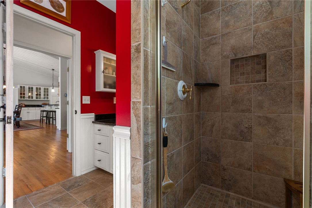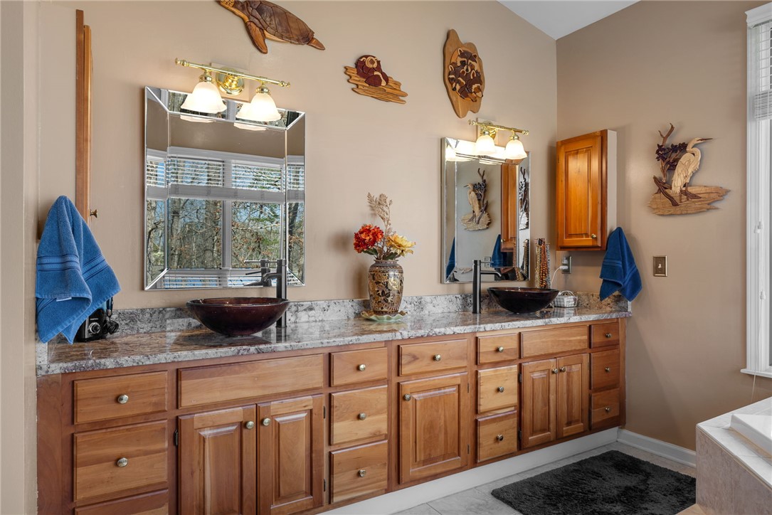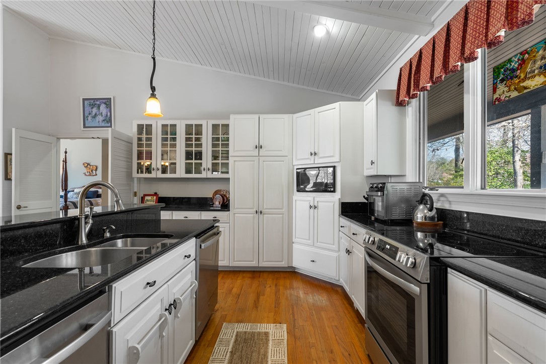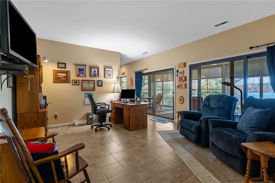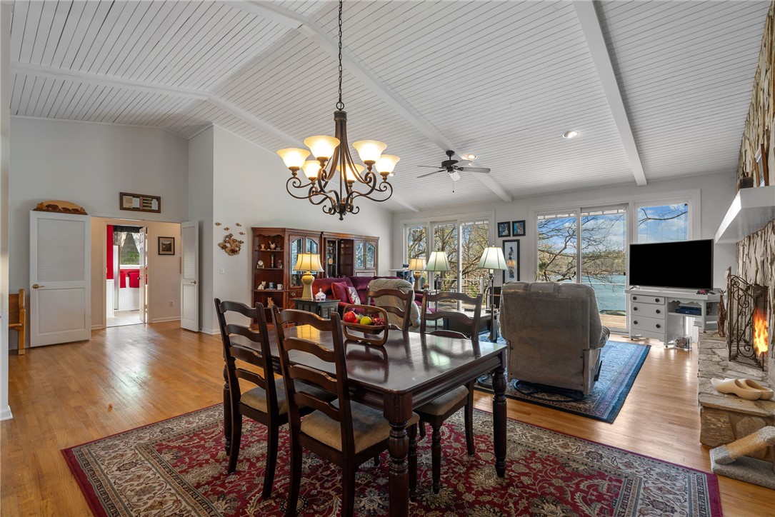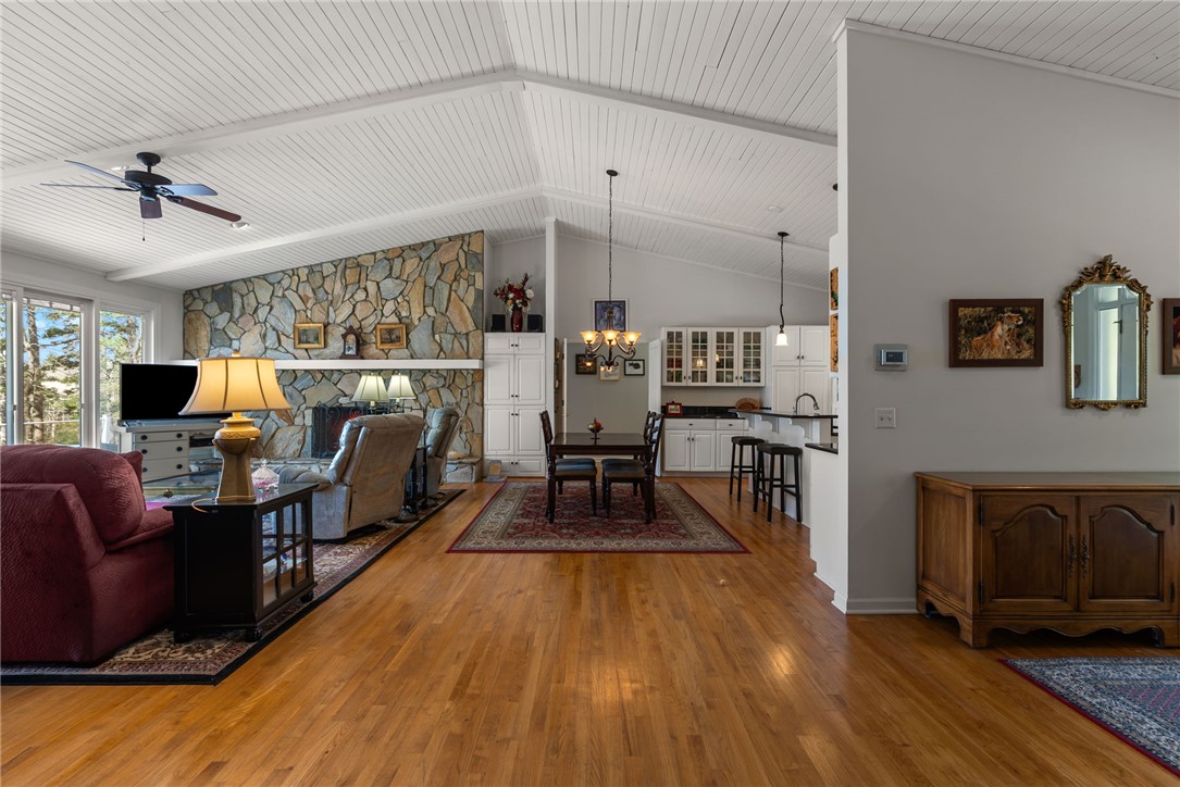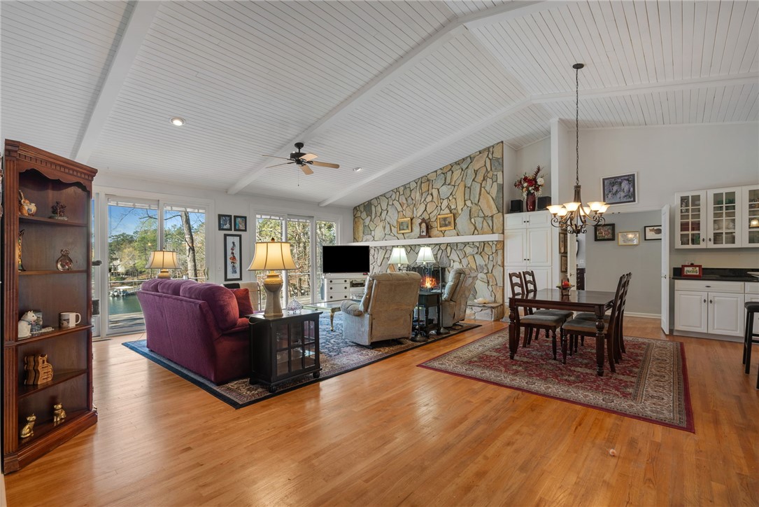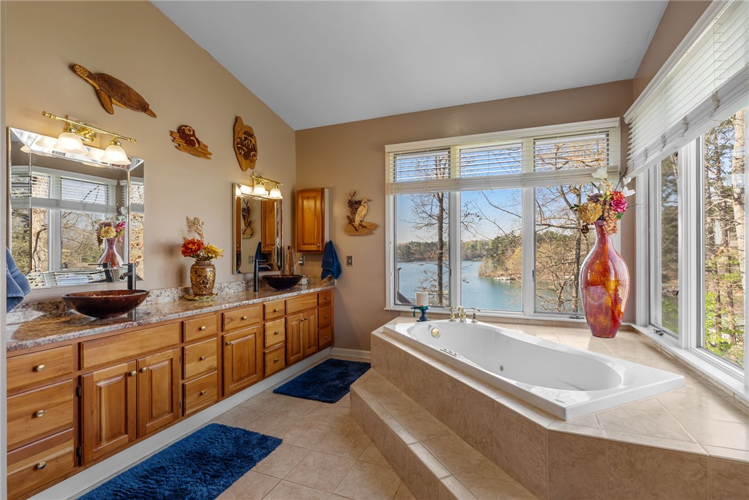 Set in the amenity-rich community of Keowee Key, this inviting waterfront home blends classic charm with spacious, easy lake living. A full-length covered front porch welcomes you in, while inside, vaulted ceilings and a striking floor-to-ceiling stone fireplace anchor the bright main living area. A wall of glass doors fills the space with natural light and showcases peaceful water views. The kitchen flows seamlessly into the dining area and features an island, generous counter space, and ample cabinetry—ideal for everyday living and entertaining. The main-level primary suite offers privacy, its own stone fireplace, exterior access, built-ins, a walk-in closet, and a spacious bath with double vanities, jetted tub, and walk-in tile shower. Just down the hall from the primary bedroom is the laundry room for added convenience. On the opposite end of the living room is a second main level guest bedroom, full hall tile bath, office and craft room plus an oversized two car garage with its own water closet. The terrace level adds flexibility with an additional third guest bedroom and full bath, separate den, kitchenette, and abundant storage. An expansive all-season porch with EZ Breeze windows spans the lower level, providing year-round enjoyment of lake views. Outside, a path leads to a covered dock with boat lift on over 120-feet of Lake Keowee shoreline. A connected lakeside seating area is perfect for dining or relaxing while overlooking the water. With two driveways for ample guest parking, this warm and welcoming home is an exceptional opportunity to enjoy waterfront living. Don't miss the 700-square foot climate controlled workshop located on the rear left of the home. With an independent entrance, windows and ventilation, this unique find is a wood-workers dream come true, and the home also features a roof with a 50-year transferable warranty, installed in March 2026. Keowee Key offers a true resort-style lifestyle with an impressive range of amenities designed for both relaxation and activity. Residents enjoy an 18-hole championship golf course, tennis and pickleball courts, a state-of-the-art fitness and racquet center with indoor pool, and multiple outdoor pools. The community also features multiple marinas with boat slips and rentals, scenic walking and leisure trails, private beach areas, and a recently modernized clubhouse with dining and social spaces. With numerous clubs, classes, and year-round events, Keowee Key provides an active, welcoming environment set against the natural beauty of Lake Keowee. Come home to 26 Marina Village Way - a perfect place to watch the sun dance across the water from every living and bedroom. Start living your lake journey today.