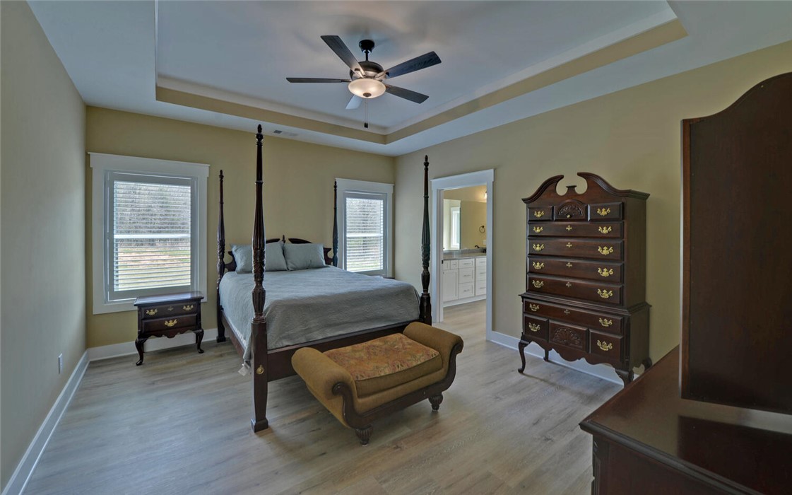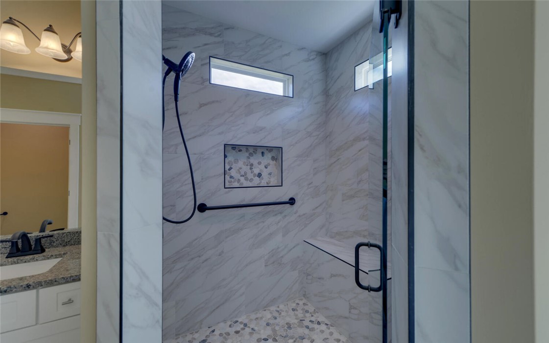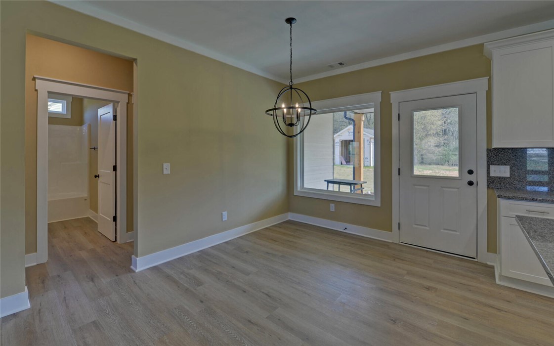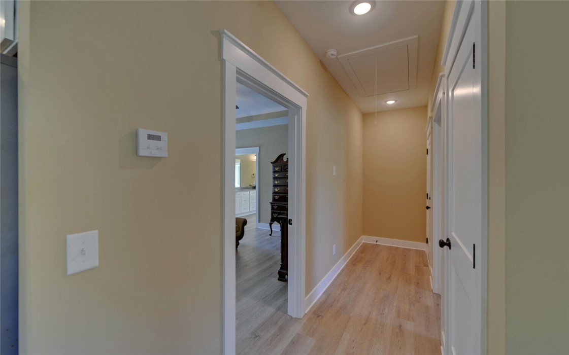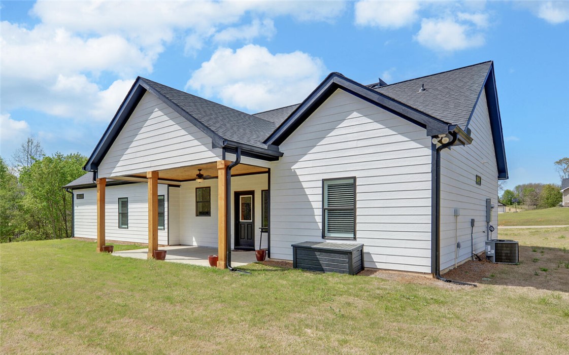 Welcome to your Craftsman-style dream home, where comfort, style, and peaceful living come together beautifully. Restricted subdivision, just minutes to town. Enjoy relaxing mornings on the inviting front porch or unwind on the covered back patio, both featuring stunning wood ceilings. Inside, the spacious great room welcomes you with a cozy stone fireplace, perfect for gathering with family and friends. The kitchen is a true standout, offering granite countertops and backsplash, stainless steel appliances, and soft-close cabinetry & ideal for both everyday living and entertaining. Luxury vinyl plank flooring flows throughout the home, combining style with durability. This thoughtfully designed home includes a separate laundry room with a new washer and dryer. The owner’s suite is a private retreat, featuring a spa-like ensuite bath with modern finishes, a huge handicap-accessible tile walk-in shower, separate soaking tub, and an oversized walk-in closet. With 3 bedrooms, 2 bathrooms, and 1,855 square feet and attached garage, there’s plenty of space for everyone. Situated on 2.44 acres, the oversized lot includes a portion of a peaceful pond, creating your own oasis. Additional highlights include a brand-new outbuilding (in the process of being finished with an overhead and walk-in door). This custom-built home has numerous upgrades by the owner, including spray foam insulation installed in the attic, a sprinkler system, and a beautifully sodded yard. This exceptional property truly has it all - don’t miss your chance to call it home!