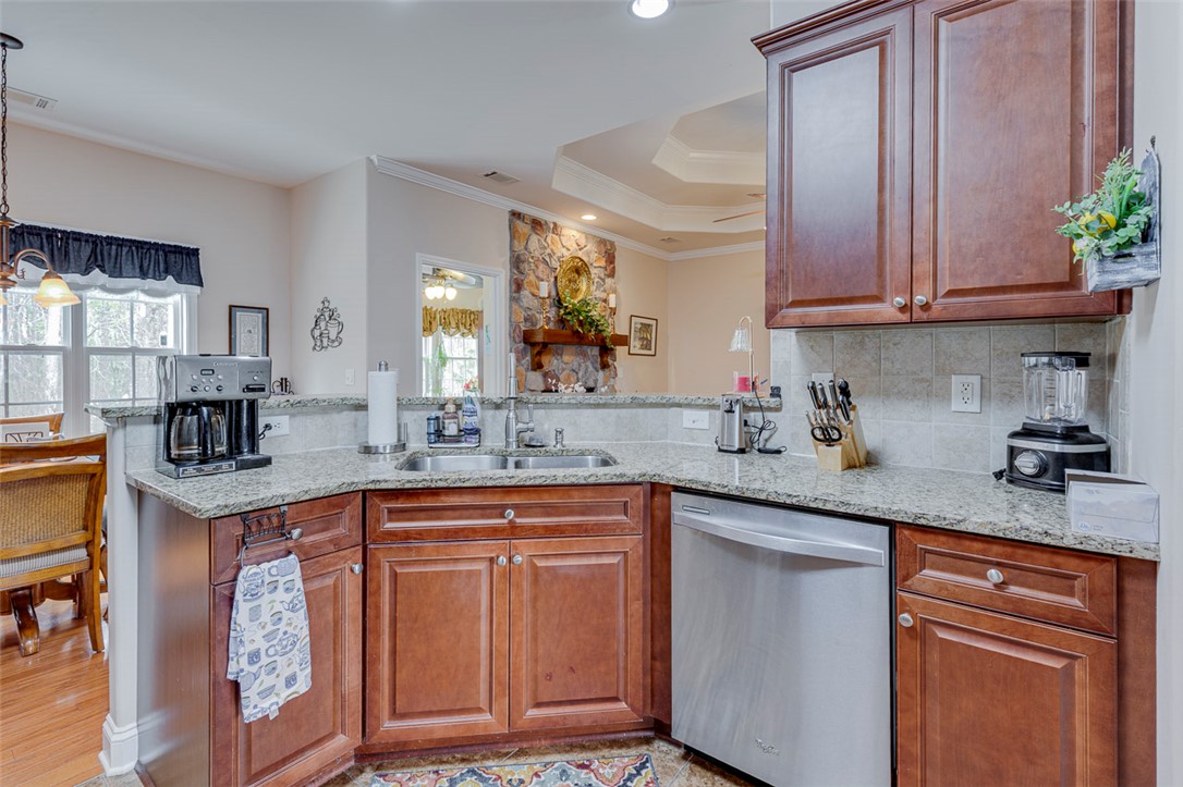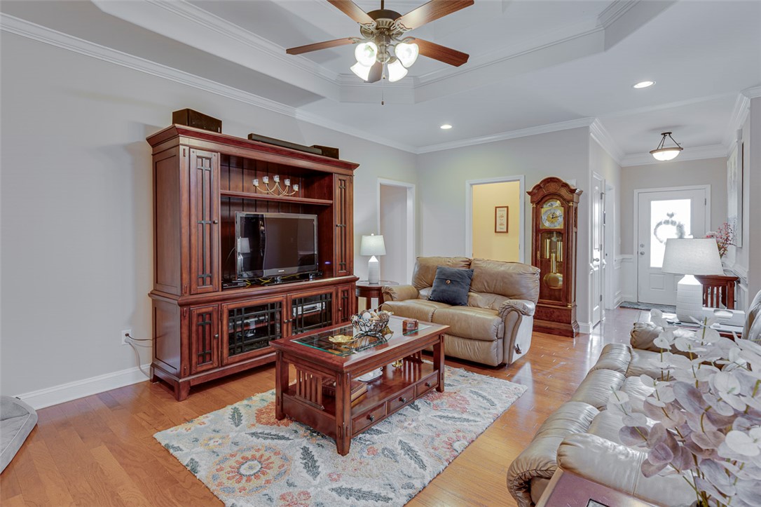 Beautifully maintained BRICK RANCH with STONE ACCENTS and a versatile FLEX ROOM ABOVE THE GARAGE! This well-cared-for home offers a functional SPLIT BEDROOM FLOOR PLAN and quality finishes throughout, including HARDWOOD FLOORS in the main living areas, CERAMIC TILE in the bathrooms, and comfortable carpet in the bedrooms and flex space. Step into the welcoming foyer that opens to a spacious living room featuring DOUBLE TREY CEILINGS and a stunning ROCK HEARTH GAS LOG FIREPLACE—perfect for cozy evenings. The FORMAL DINING ROOM showcases TREY CEILINGS, PLANTATION SHUTTERS, WAINSCOTING, and CHAIR RAIL, creating an elegant space for entertaining. The EAT-IN KITCHEN is designed for both everyday living and hosting, complete with GRANITE COUNTERS, TILED BACKSPLASH, STAINLESS STEEL APPLIANCES, and views overlooking the FENCED BACKYARD. Just off the main living area, the SUNROOM offers a peaceful retreat where you can relax and enjoy natural light and backyard views year-round. The PRIMARY SUITE is a private haven featuring a TREY CEILING, DUAL VANITIES, MAKEUP VANITY, SEPARATE SHOWER, and WALK-IN CLOSET. On the opposite side of the home, two additional bedrooms share a full bath, providing privacy and comfort for family or guests. Located in a community of UPSCALE BRICK HOMES, residents enjoy access to a NEIGHBORHOOD POOL just a few houses away. Ideally situated off HWY 81 in Anderson, SC, this home offers EASY ACCESS to TL HANNA HIGH SCHOOL, SHOPPING, DINING, and ENTERTAINMENT. A perfect blend of COMFORT, STYLE, and LOCATION—this home is ready to welcome its next owner!