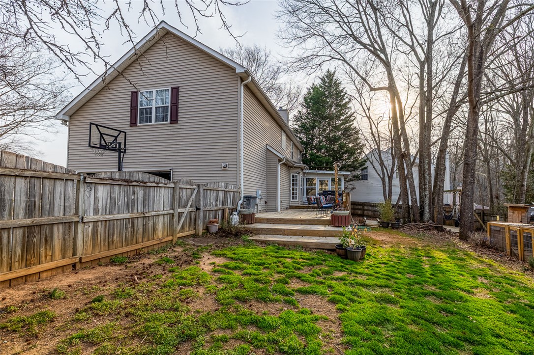 OPEN HOUSE 2-4 PM MARCH 29TH SUNDAY! Welcome Home!! This wonderful, two-story, 4 bedroom, 2 1/2 bath home is every buyer’s dream. It is located in a well established neighborhood and sits on a corner of a cul-de-sac. It has an awesome sunporch that has windows; perfect for spring, summer and fall. It's a great place for relaxing. There is a large deck that includes space for a grill, table and chairs so that you can watch the fur babies play in the beautiful backyard. You will love the raised beds for a home garden. Chickens are allowed!! There is also a cozy fire pit area for roasting marshmallows for s'mores. You will love the formal dining room and home office with additional built-in shelving. The eat-in kitchen opens to the family room with cozy fireplace. Upstairs you will find the primary suite with spa-like bathroom. The additional bedrooms are generously sized. Several updates have been done to the inside of the home, an updated kitchen with quartz countertops, the half bath has been updated as well. Facade walls have been added to the large bedroom to create a flex space. The carpets have been professionally cleaned for the new owner. New LVP has been added to the lower level. Summerwalk Subdivision is very convenient to 385, grocery stores, restaurants, the YMCA and the library. In the summertime, you'll enjoy spending time in the neighborhood pool. You don't want to miss seeing this fabulous home!