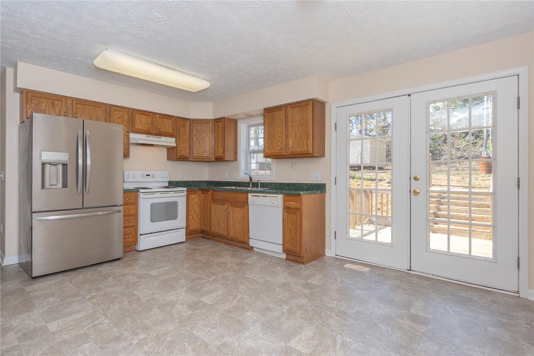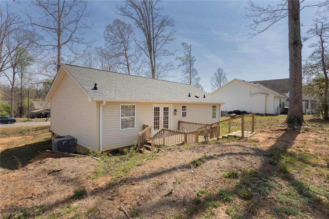 Property location qualifies for 100% USDA Rural Housing Loan financing. Within minutes your drive brings you into downtown Honea Path and its shopping, Anderson District 2 schools (BHP High School) and restaurants. Brookside Subdivision consists of a single cul de sac street with no HOA nor fees. At almost 1/2 acre the lot consists of shade trees in backyard and there is an outbuilding complete with internal wiring; requires electricity run to it. Entry at front door leads to living room with a guest coat closet. Majority of home is finished with hard flooring. Kitchen area is generous in size with eat in area and access door to backyard. The laundry room will be a Buyer favorite with its ample size and 2 entry doors; hallway and garage. Split bedroom floorplan for owner privacy. Primary bedroom is finished with warm and quite carpet and bathroom has new vibrant vinyl flooring, double sinks, tub/shower and walk in closet. Secondary bedrooms share a hallway located bathroom. Large backyard deck is perfect for grilling and outdoor enjoyment. 2 vehicle capacity attached garage has high ceilings that would allow for addition of storage shelving. This 3bed/2bath home has a new roof and ~5 year HVAC unit and at closing kitchen appliances will remain.