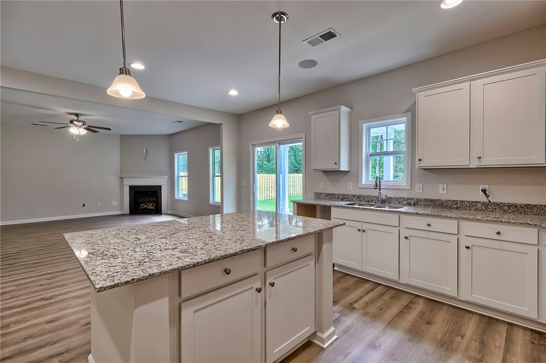 This newly improved Devonshire II A6 offers approximately 2500+ square feet of thoughtfully designed living space, featuring 4 bedrooms and 2.5 bathrooms with an open-concept layout ideal for both everyday living and entertaining. The exterior showcases a striking combination of white and sandy siding with brown stone veneer, a beautiful white front door with chocolate-colored shutters that complements the siding along with the stone colors. The interior is designed with modern finishes, including white cabinetry with nickel hardware, nickel lighting fixtures, white quartz countertops, coordinating white tile backsplash, and luxury vinyl plank flooring. The main level features a bright, open living area flowing seamlessly into the dining and kitchen spaces. The upgraded kitchen includes a large center island, quartz countertops, a gas fireplace, and stainless-steel ENERGY STAR® appliances, including a gas range, dishwasher, and microwave. Also on the main level are a flex room near the entry, a powder room, and access to the two-car garage. Upstairs, a spacious loft provides additional living space, along with all four bedrooms. The primary suite offers a private retreat with two large walk-in closets, dual vanities, a walk-in tile shower with fiberglass pan, tub, and contemporary fixtures. A dedicated second-floor laundry room adds everyday convenience. Energy-efficient features include a tankless gas water heater and HERS energy certification with third-party testing, providing long-term efficiency and cost savings. Located in the Lawton Ridge Subdivision, connected to Belvedere, this home is situated in a desirable community near Pendleton High School. Please note: This home is currently under construction. Photos are of a Devonshire floor plan on a different lot and will be updated upon completion. Prices subject to change without notice. Lot 36 Devonshire II A6