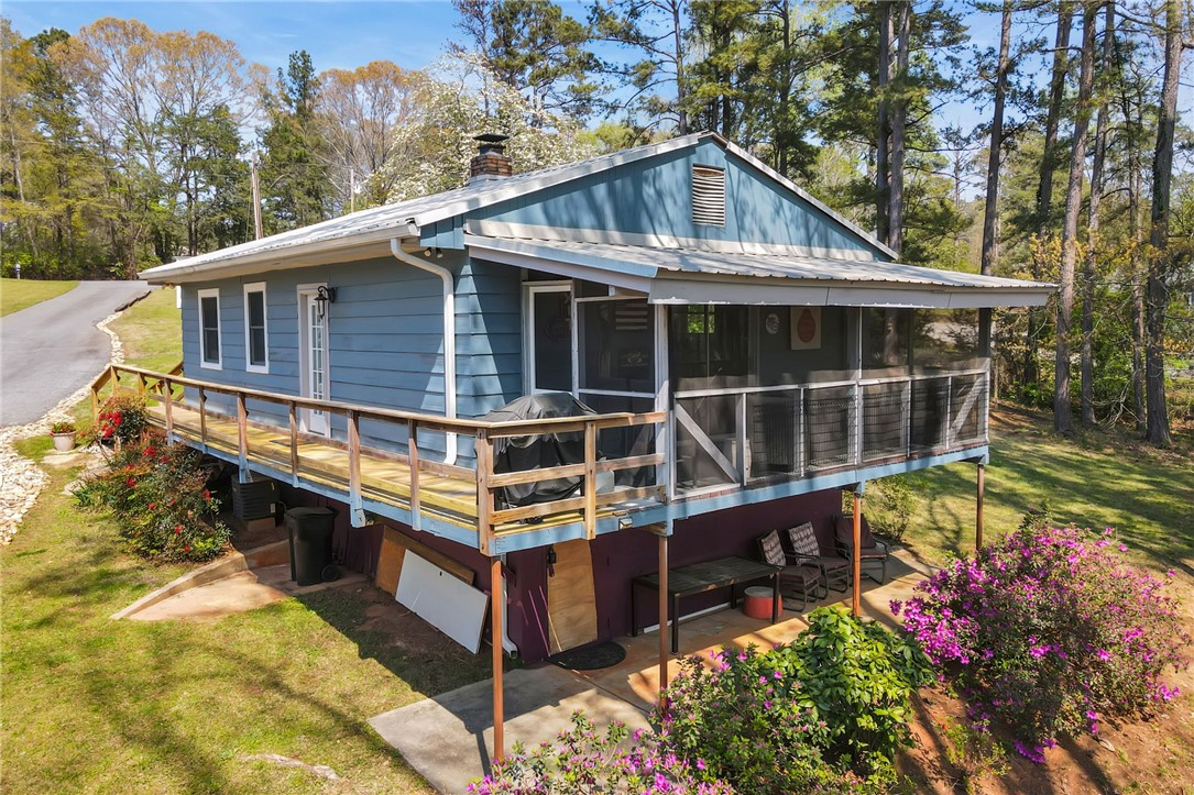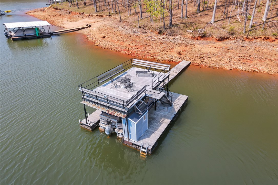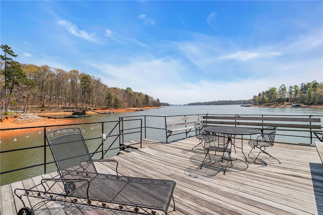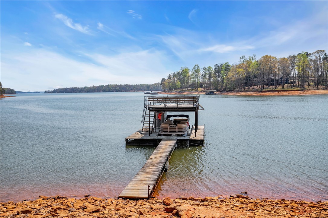 Check out this rare Lake Hartwell find! This property features a double lot on deep water located off the main Tugaloo channel at marker T14, offering 189 feet of water frontage. The lot includes a two-story covered dock and a sandy beach area. The large double lot is situated on a quiet dead-end street with no HOA, allowing for numerous expansion options. The bungalow-style home was recently refreshed in 2026 with new windows, granite countertops, and fresh paint. This three-bedroom, one-bath home features an open-concept kitchen and living area with a wood-burning fireplace, a screened porch, and a deck offering exceptional sunrise and sunset views. Additional features include an enclosed laundry and storage room and a patio for lake equipment.? Currently operating as a VRBO, the property is being offered furnished, including a pontoon boat and trailer. It is conveniently located near I-85 with quick access to the Hattons Ford boat landing.This is a wonderful opportunity to enjoy the lake immediately while planning for the future. Please let me know if you would like more information.