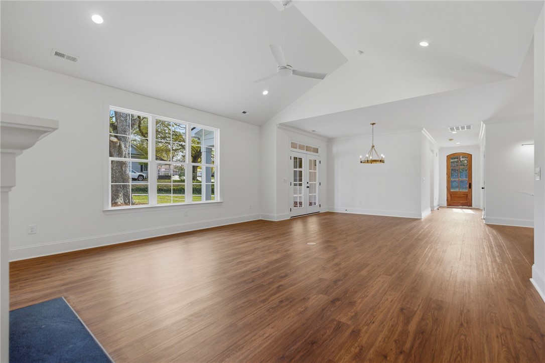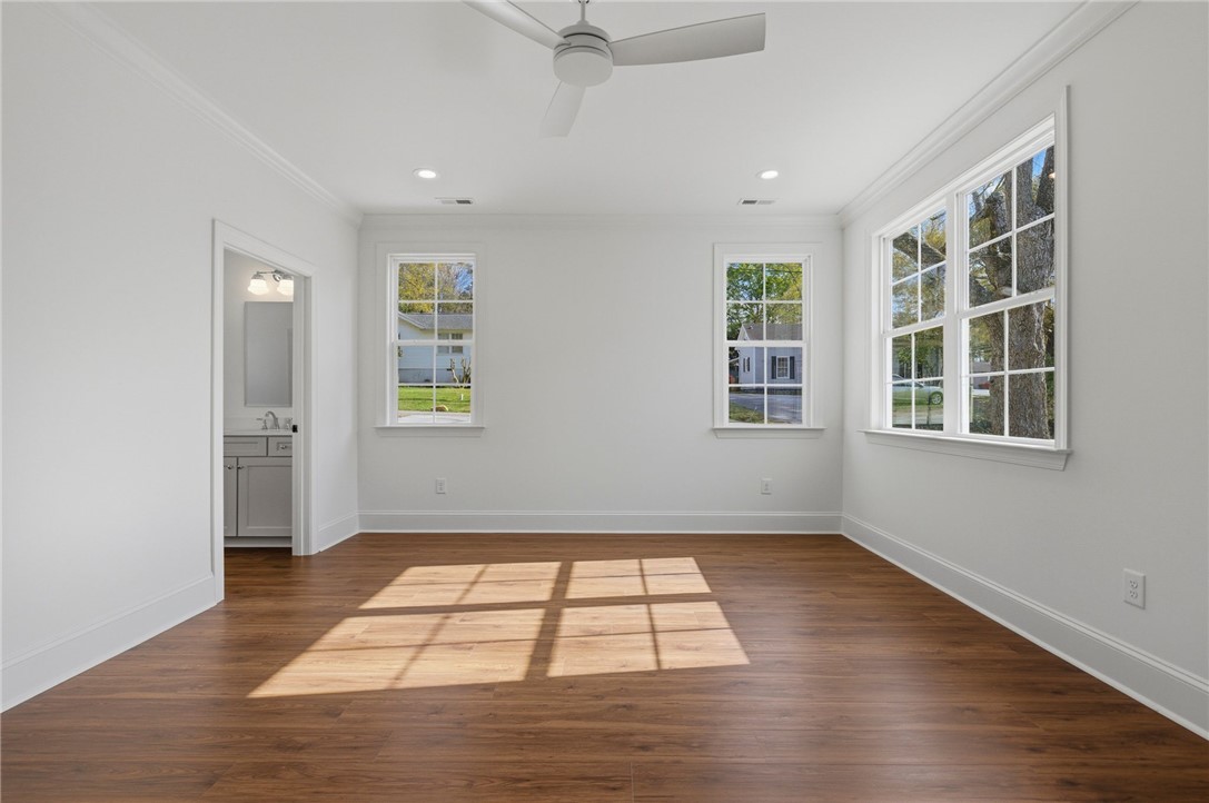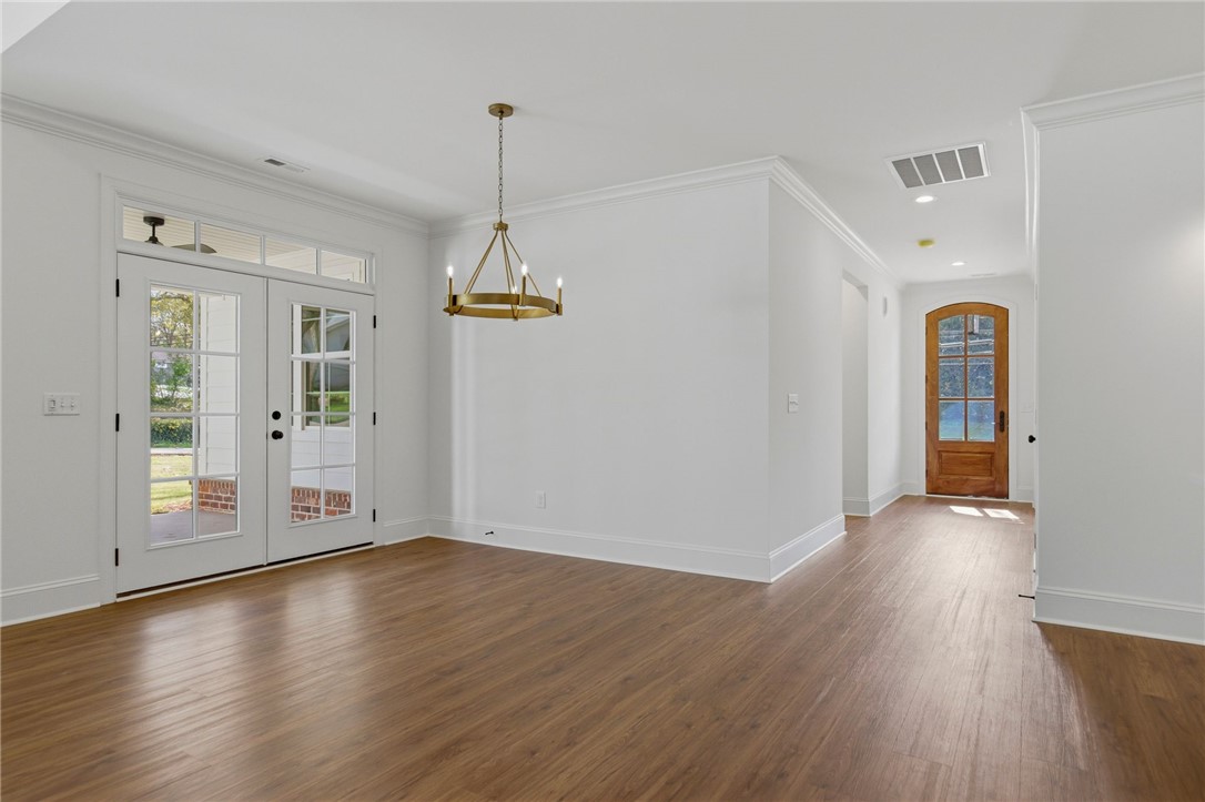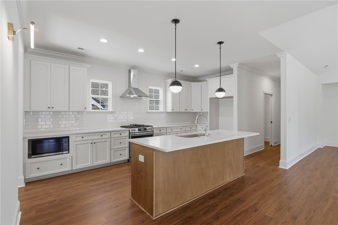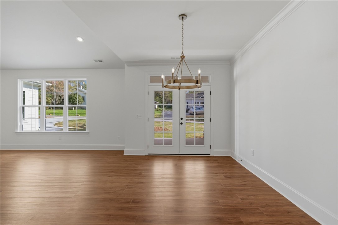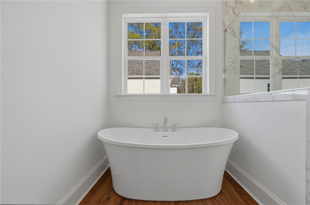 Beautifully crafted one-level custom home in the heart of downtown Easley! Designed with attention to every detail, this stunning home features luxury vinyl flooring throughout, gorgeous quartz countertops, and stylish fixtures that elevate every space. The open floor plan is ideal for entertaining, complemented by vaulted ceilings in the great room and a flexible space perfect for a formal dining room or home office. The split-bedroom design offers privacy, with a spacious primary suite featuring a custom walk-in closet, double vanity, a relaxing soaking tub, and a separate tiled shower. The kitchen is equipped with stainless steel appliances and flows seamlessly into the main living areas. Additional highlights include a tankless water heater and a two-car garage with a convenient utility sink. Step outside to the covered porch—your own private oasis—overlooking a beautifully manicured yard with a full sprinkler system. Located just a short walk to downtown Easley, the Doodle Trail, Silos shopping, restaurants, and medical facilities, this home truly has it all!