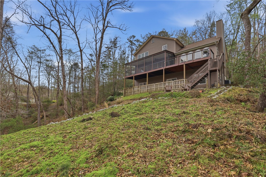 The view is the reason you come. The layout is why you stay. Mountain views from every level of the home, paired with a layout that gives youreal flexibility across all three floors. Set within The Rock at Jocassee, this property was designed so the spaces you actually use, living area,porch, and each level, face the mountains, not away from them. Add in a private lower level with its own entrance and kitchenette, and you startto see how differently this home lives compared to most. The main level is open without feeling oversized. Vaulted ceilings and a stone fireplaceanchor the space, while natural light keeps your attention moving toward the ridgeline. The kitchen is clean and functional with granite, stainlessappliances, and room to gather without getting in the way. Each level of the home includes its own bedroom and bath, creating a level ofseparation and flexibility that is hard to find. Upstairs, the primary suite offers more than just a bedroom, with space for a sitting area, office, orprivate living area along with a full bath. It feels tucked away in the right way, with its own perspective of the mountains. The lower levelfunctions almost like its own apartment. With a private entrance, kitchenette, full bath, and a large recreation room, it creates separation whenyou want it and flexibility when you need it. Guests can have their own space, or it can be used for rental income. Outside, the home settles intothe lot in a way that is hard to find. The screened porch and deck are positioned for the views, while the backyard is surrounded by trees,creating privacy that is getting harder to find. The firepit area gives you a natural place to gather at night with nothing but woods and sky aroundyou. The Rock at Jocassee offers access to golf, trails, and waterfalls without requiring membership. You are also close to Table Rock StatePark, Lake Keowee, and Lake Jocassee when you want to explore beyond your own property. Most homes here give you a view. This onemakes it part of how you live every day.