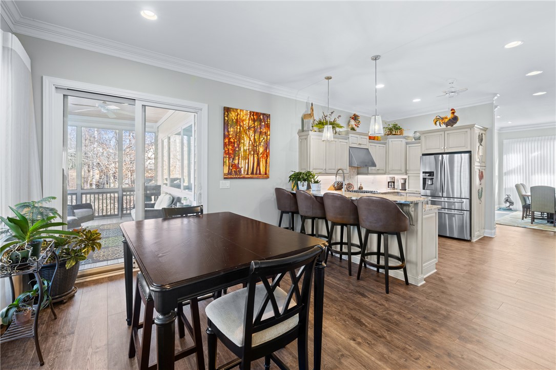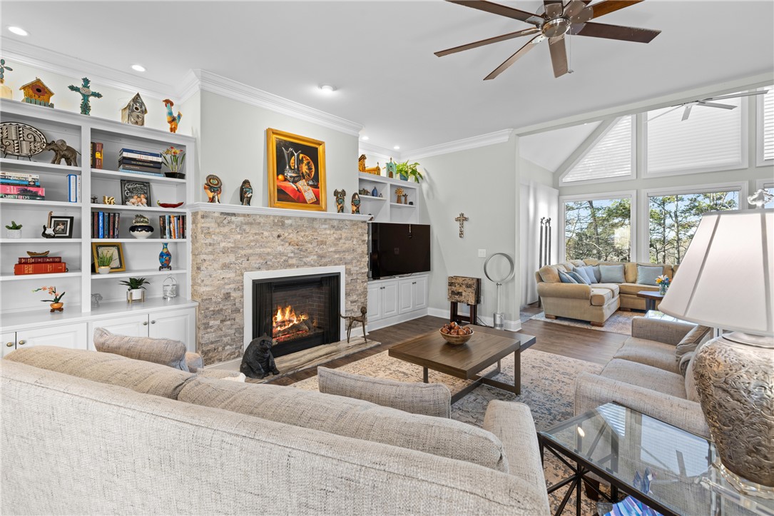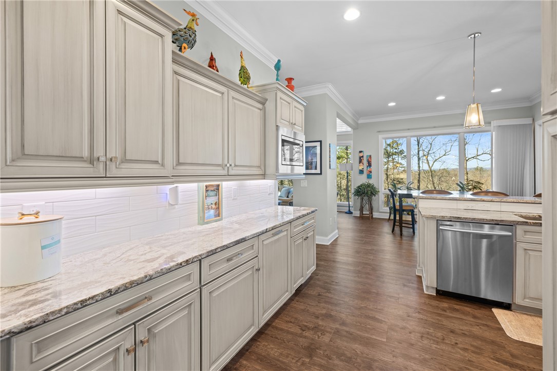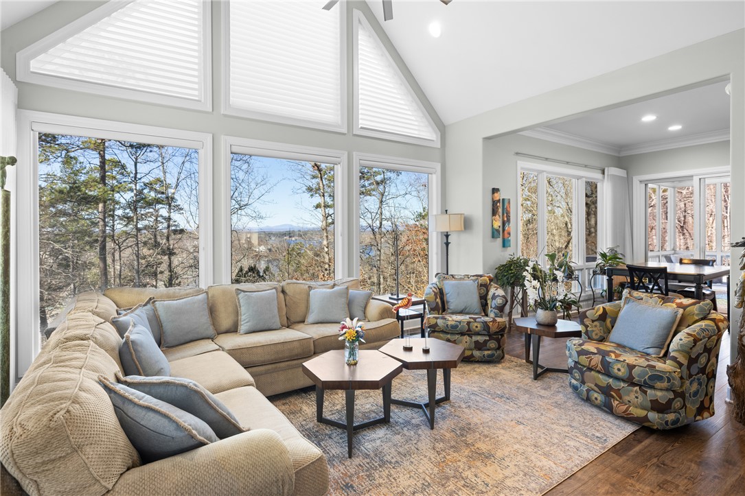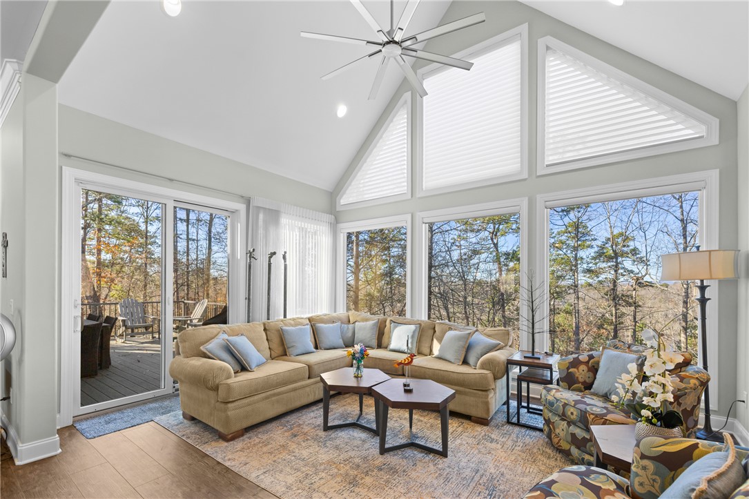 Welcome to the desirable Waterford Pointe community on Lake Keowee. This stunning community is conveniently located near Seneca, Clemson, and Greenville. The property boasts a substantial 2.22-acre corner lot and includes a deeded boat slip (I-82). Experience spacious and bright living with open and airy main-level spaces that offer breathtaking views of the lake and mountains throughout. The entertaining space is ample, featuring a large living room, a large keeping room, a formal dining area, and a breakfast nook. This home offers a fantastic layout for both owners and guests, featuring a split-bedroom floor plan. The luxurious main suite includes dual walk-in closets, dual sinks, and a custom tile shower with a zero threshold. The expansive living room is enhanced with built-ins and a gas fireplace, while the adjoining keeping room features a vaulted ceiling and large picture windows that showcase the long range views. The modern kitchen is updated with new appliances and granite countertops. Enjoy meals in the formal dining area, the breakfast nook, or al fresco on the screened porch. Outdoor entertaining options include a cozy screened porch, a large deck with shade screens, a patio area below, and a small fenced yard. Additional amenities include three guest bedrooms, one of which is currently used as an office, a full bath, a powder bathroom, and a laundry room with a sink. The home offers plenty of storage options, including a two-car garage with epoxy flooring, a walk-in pantry, a storage room just inside from the garage, and a 350+ square foot storage area below the main level. The deeded boat slip (I-82) is in deep water and is very easy to pull in and out of since there's no other dock on that side, adding to the property's appeal. Waterford Pointe includes sidewalks for leisurely strolling, two tennis/pickleball courts, a jr. olympic pool, a clubhouse, boat trailer storage, and a playground. This location is a mere 20 minutes from Clemson, less than one hour from Greenville, and under two hours from Asheville.