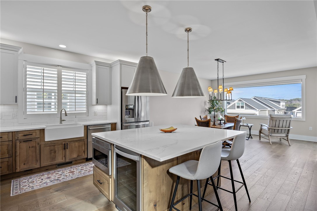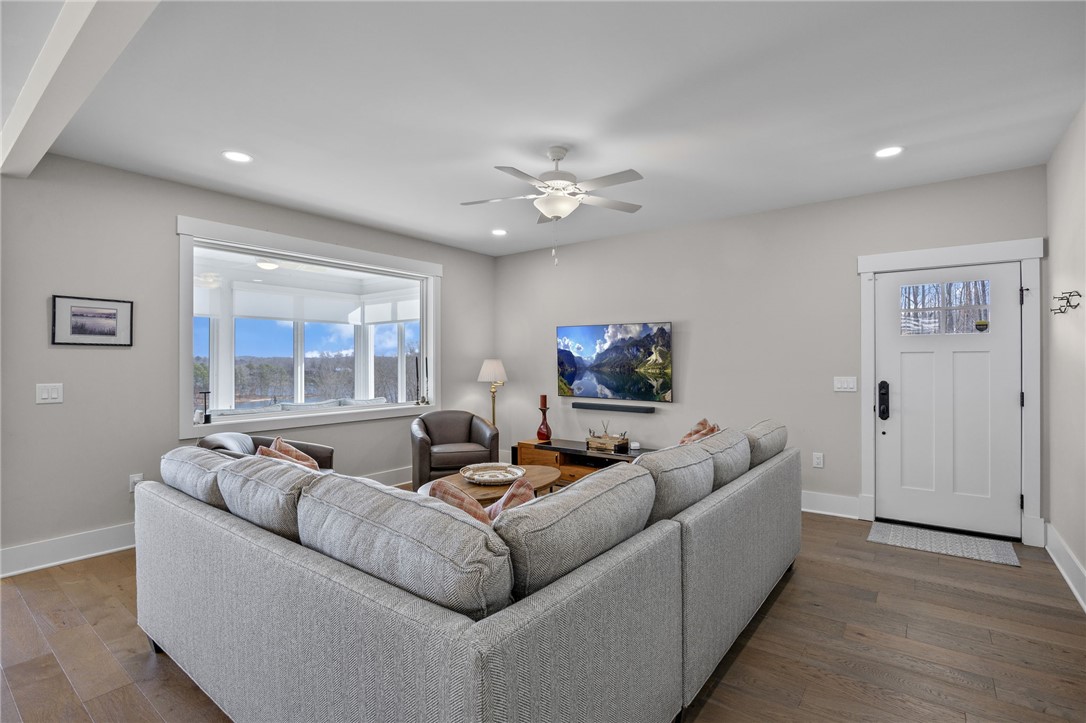 NEW BOAT SLIPS! Experience the ultimate Lake Keowee lifestyle in this beautifully appointed luxury lake home, perched atop The Ridge at Lake Keowee. Enjoy scenic lake views, lovely finishes, and the ease of low maintenance living in a private, gated setting. Designed for relaxed lakeside living and effortless entertaining, the open-concept floor plan features a chef’s kitchen with stainless steel appliances, gas range, built-in undermount microwave, tile backsplash, under-counter beverage refrigerator, oversized quartz topped island, and spacious dining area. Wide-plank hardwood floors flow into the inviting living room, dining and lake-watch keeping room. A screened, covered front porch with EZE-Breeze windows, privacy shades, and ceiling fan offers year-round enjoyment of the lake views. An elevator from the garage to the main level provides convenient access for groceries and daily living. The main-level primary suite features dual sinks, added cabinetry, a walk-in closet, and a large tiled walk-in shower. A second main-level bedroom easily serves as a guest room or private study. Upstairs, a generous second primary suite offers flexibility as a bonus room or media space. The private covered back porch is ideal for quiet evenings and relaxed barbecues. Residents of The Ridge at Lake Keowee enjoy access to the exceptional amenities of Backwater Landing, including walking trails, boardwalks, waterfront lodge, pool, beach area, fitness center, library, billiards room, and marina. A boat slip is available for lease with this home for $4,000 a year and the newly constructed slips are expected to be boat-ready soon—making it easy to enjoy the emerald waters of Lake Keowee. Conveniently located near shopping, grocery stores, and medical facilities—yet tucked away in a serene enclave—this home offers a rare balance of luxury, privacy, and convenience. The modified tax structure and low-maintenance lifestyle associated with the land lease make this an exceptional opportunity on Lake Keowee. The 2026 monthly regime for this home is $660, which includes the land lease, landscaping maintenance, gated community access, pool, clubhouse, walking trails, fitness center, lighting, and more. There is no traditional HOA. Monthly fees vary based on individual usage, including boat slip rental, storage units, and whether the owner is a full-time or part-time resident. Please contact your real estate agent for a full breakdown of fees and available services. Due to septic capacity, the home is suitable for two full-time residents, with visitors' welcome. Schedule your private tour today and experience luxury lake living at its finest.