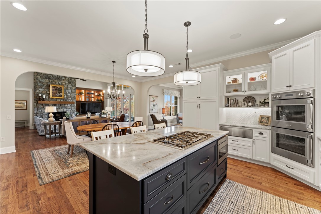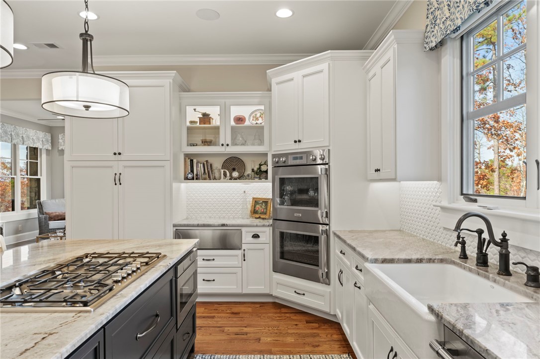 Perched high above, 551 Cliffs Vista Parkway offers sweeping long-range mountain views, refreshing mountain air, and convenient access to all the amenities that define the Cliffs at Keowee Springs lifestyle. Ever-changing vistas showcase the beauty of each season, creating a stunning backdrop from sunrise through sunset. Set on 1.87 acres, this homesite blends manicured landscaping with native hardwoods and pines, complemented by a large grassy lawn ideal for entertaining, hosting outdoor games, or just enjoying a relaxed evening gathered around the firepit. The elevated driveway and upper parking area enhance privacy, while additional convenient parking near the garage makes welcoming your guests easy. Built by Brad Kisker, this custom home is thoughtfully crafted for both family comfort and flow. The main level serves as the natural gathering space, featuring the primary suite, study, great room, kitchen, dining area, sunroom, laundry, and mudroom—all unified by warm wood flooring. The great room impresses with vaulted ceilings, a stone fireplace with gas logs, and custom built-in bookcases. Sliding screened doors extend the living space to the covered back porch, seamlessly blending indoors and out. Great for entertaining on beautiful days! The sunroom quickly becomes a favorite retreat—ideal for morning coffee, afternoon reading, or taking in the mountain sunsets. Remote-controlled shades in both the sunroom and kitchen allow the light to be tailored throughout the day. The kitchen is designed to inspire, whether for everyday meals or hosting friends and family. It features stainless steel appliances, an island with gas cooktop, double ovens with swing-style doors, a warming drawer, a walk-in pantry, and captivating views that elevate even the simplest tasks. Nearby, the main-level laundry includes a sink, abundant cabinetry, and direct access to the mudroom and garage. The primary suite is a peaceful retreat, complete with a spa-like bath with a rain shower and handheld features, dual vanities, and separate walk-in closets. Upstairs there are two guest bedrooms with their own ensuites and plush carpeting. A spacious unfinished walk-in attic is down the hall and offers easy access with a ton of storage. Outdoor living is a natural extension of the home. A covered patio, expansive grass lawn, and paver firepit create inviting spaces for both quiet moments and lively gatherings, all framed by panoramic mountain views. Full front and rear irrigation ensure the landscape remains pristine with minimal upkeep. Location is everything, and this home places you just moments from the exceptional amenities of The Springs and The Landing. Enjoy the Tom Fazio–designed golf course, clubhouse dining, fitness center, pickleball and tennis courts, scenic walking trails, and stroll to the soon-to-open Bistro Café for coffee and pastries. The nearby Beach Club offers a restaurant, pool, and lake and beach access with paddleboards and kayaks, while the Lake Club features two additional pools, dining, wellness classes, and direct access to Lake Keowee. For those interested in time on the water, boat slip leasing opportunities are available through the Keowee Springs POA. Conveniently located near the main gate of The Springs, the home offers easy access in and out of the community, with short drives to Six Mile, Pickens, Seneca, and Clemson, as well as straightforward access to downtown Greenville. A Cliffs Club Membership is available for a separate purchase, providing access to amenities across all seven Cliffs communities. Here, life is elevated—by the views, the setting, and the seamless connection between home, lake, and community.