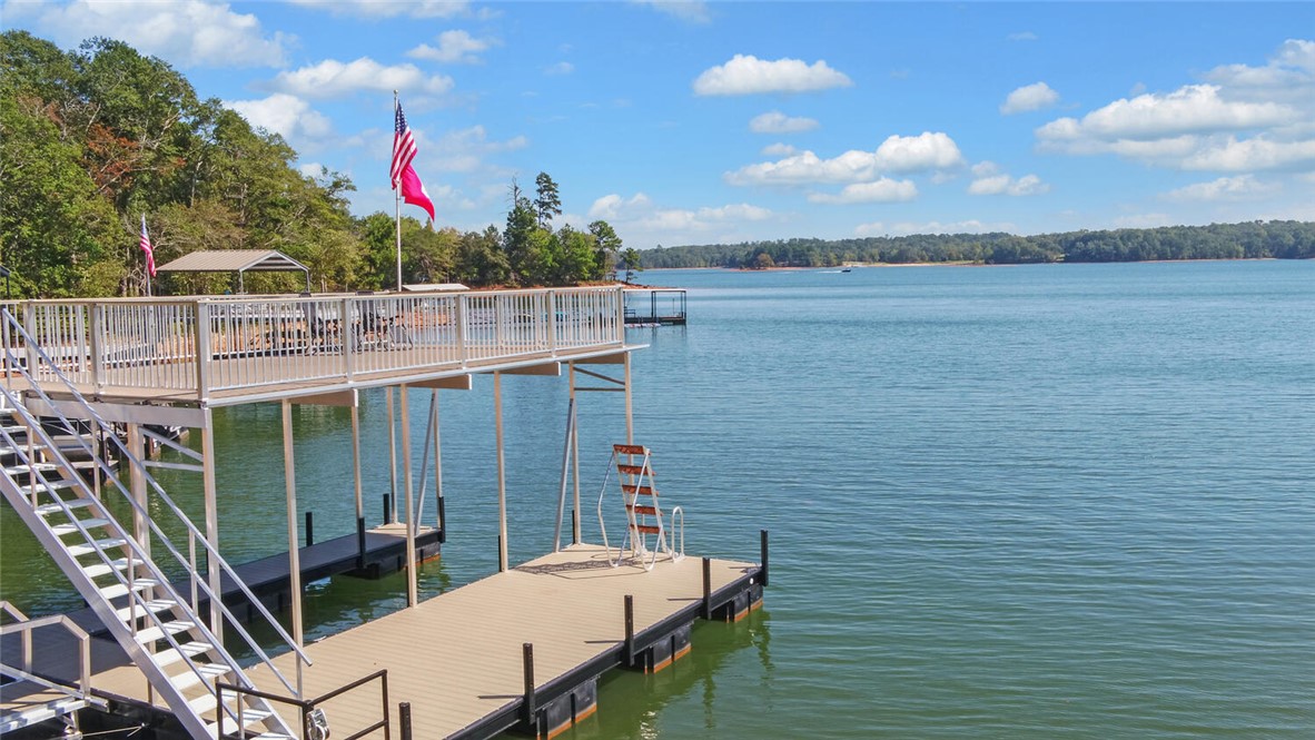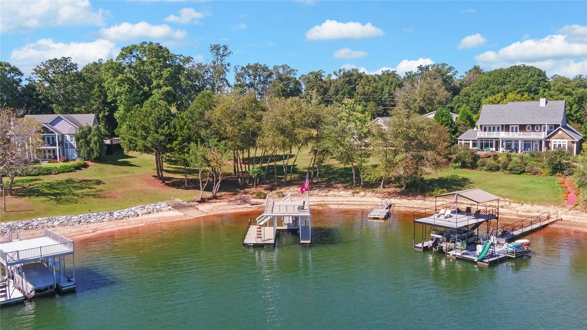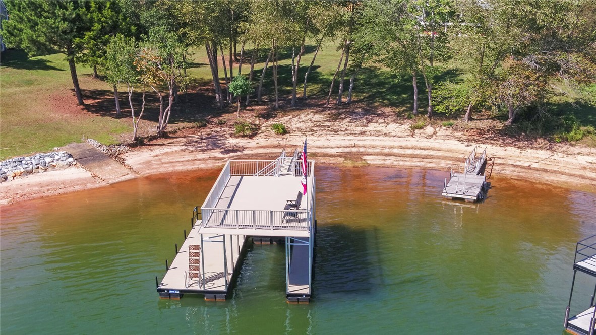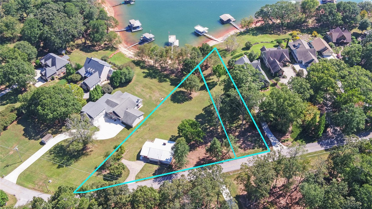Restricted Dockable Lake Lot on big water, close to marina, wonderful neighborhood, 3 miles to town with NEW aluminum/steel hybrid single-slip double-decker dock in place with beachy waterfront access. This lot is .50 acres with restrictive covenants.