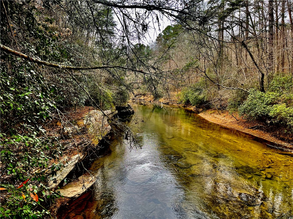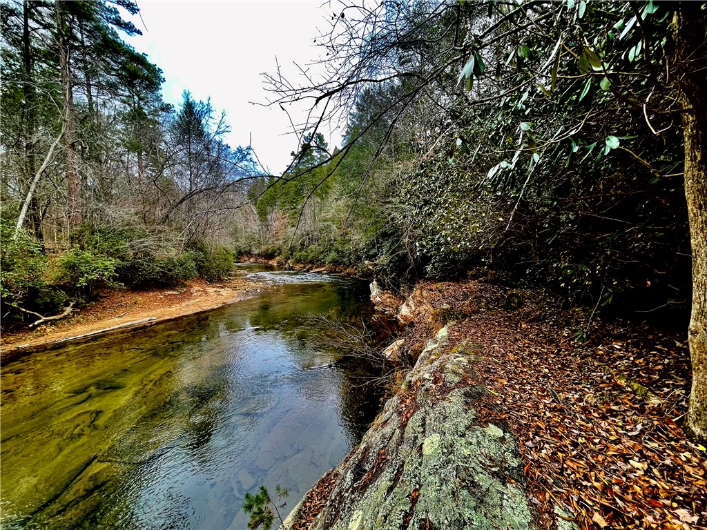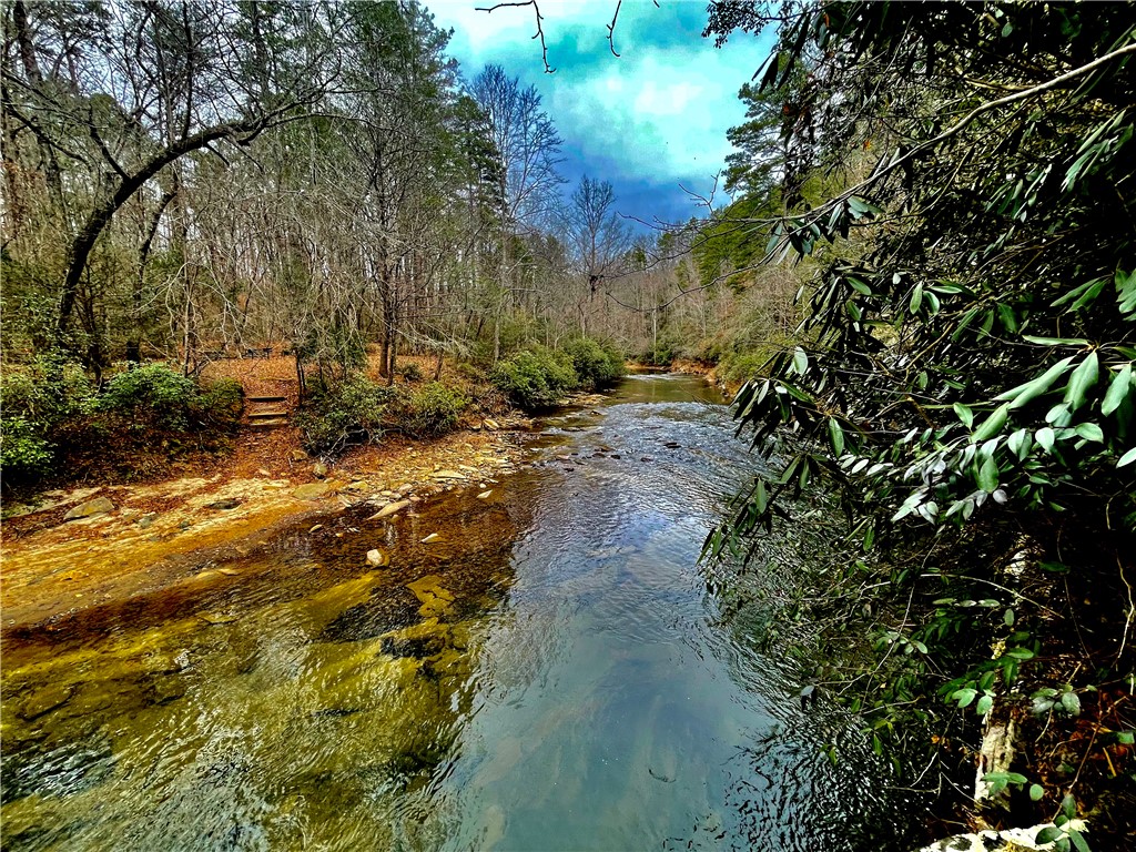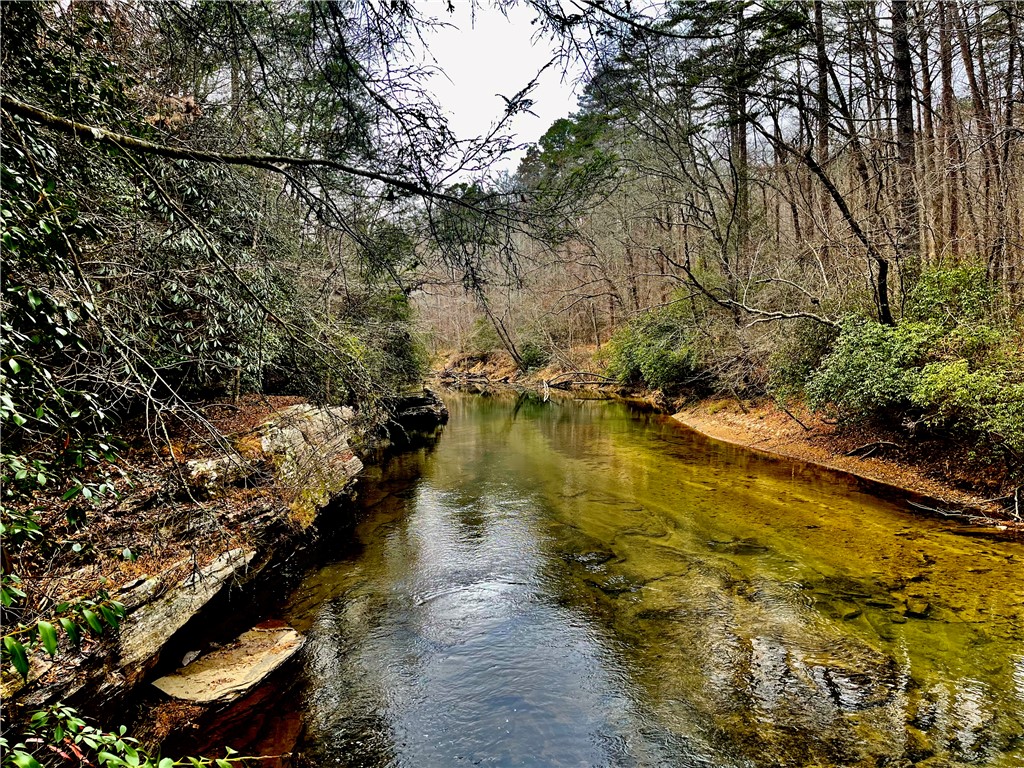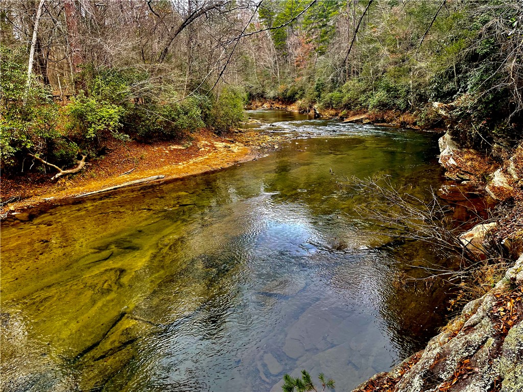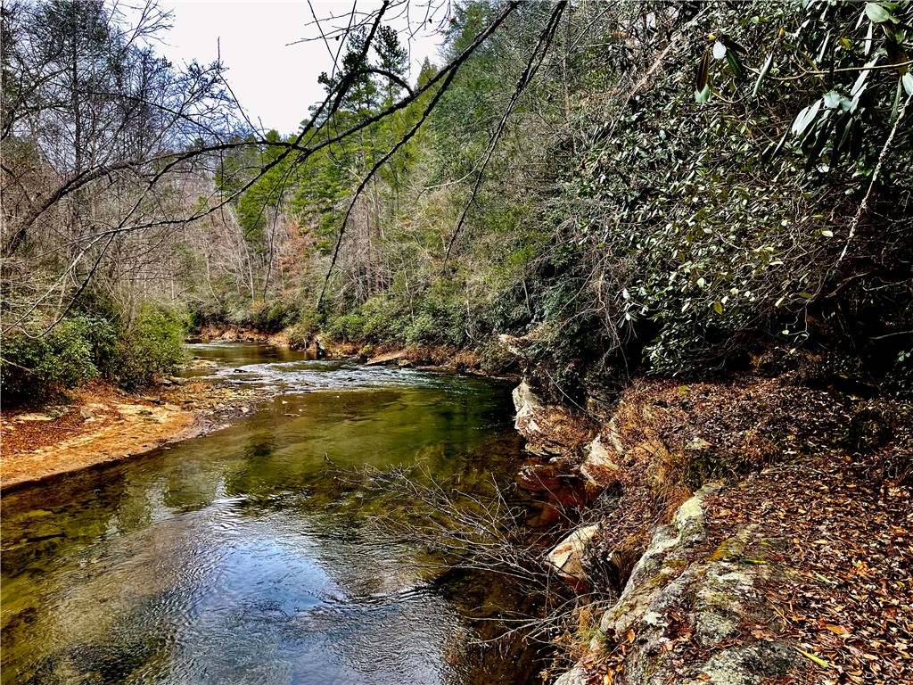 Situated on 7.99 unrestricted acres along the Chauga River, this exceptional property offers over 1,000 feet of river frontage and a rare combination of natural beauty, privacy, and versatility. A charming two-bedroom, one-and-a-half-bath hunting and fishing cabin, completed in 1998, serves as an ideal base camp or temporary residence while you build your riverfront dream home. The land features a remarkable variety of river settings, including a dramatic cliff face with a spring-fed waterfall flowing into the river, as well as expansive, level areas that provide excellent additional build sites just downstream from the existing cabin. Two established driveways allow for easy access and future expansion, making this property well-suited for multi-family or multi-generational use. Near the second build site, a dedicated fish-fry and gathering structure creates the perfect spot for hosting family, friends, and events along the fast-flowing river. Ideal for fishermen, hunters, whitewater kayakers, and outdoor enthusiasts, the property is extremely private and located near the end of a private road. Trails crisscross the land, with abundant mountain laurel, Oconee Bells, and mature hardwoods throughout. The cabin features a large open floor plan on the main level, a pantry and half bath, and a sun porch that opens to a screened porch with seasonal views up and down the Chauga. Upstairs are two bedrooms and a full bath. The cabin has propane gas heat, window A/C units, and a roof replaced in 2012, and the property is served by a drilled well with excess capacity for future expansion. Located close to Clemson University (35 minutes), Sumter National Forest, the Wild and Scenic Chattooga River, and all the great features Upstate South Carolina can offer. If you are seeking a truly unique river property offering privacy, multiple build options, and a beautiful mix of flat and rocky terrain, this is a must-see opportunity.