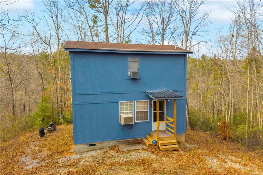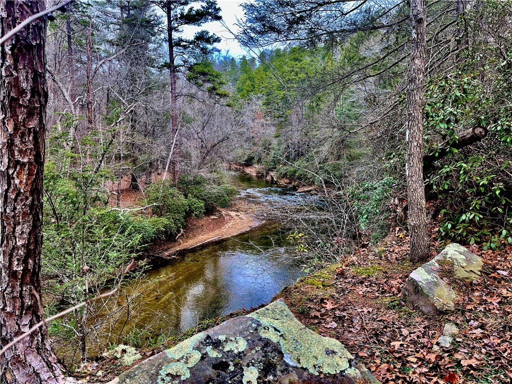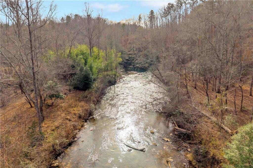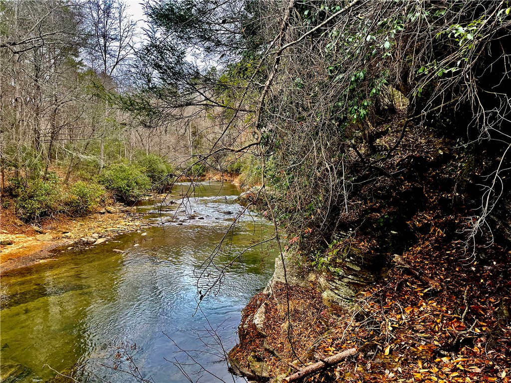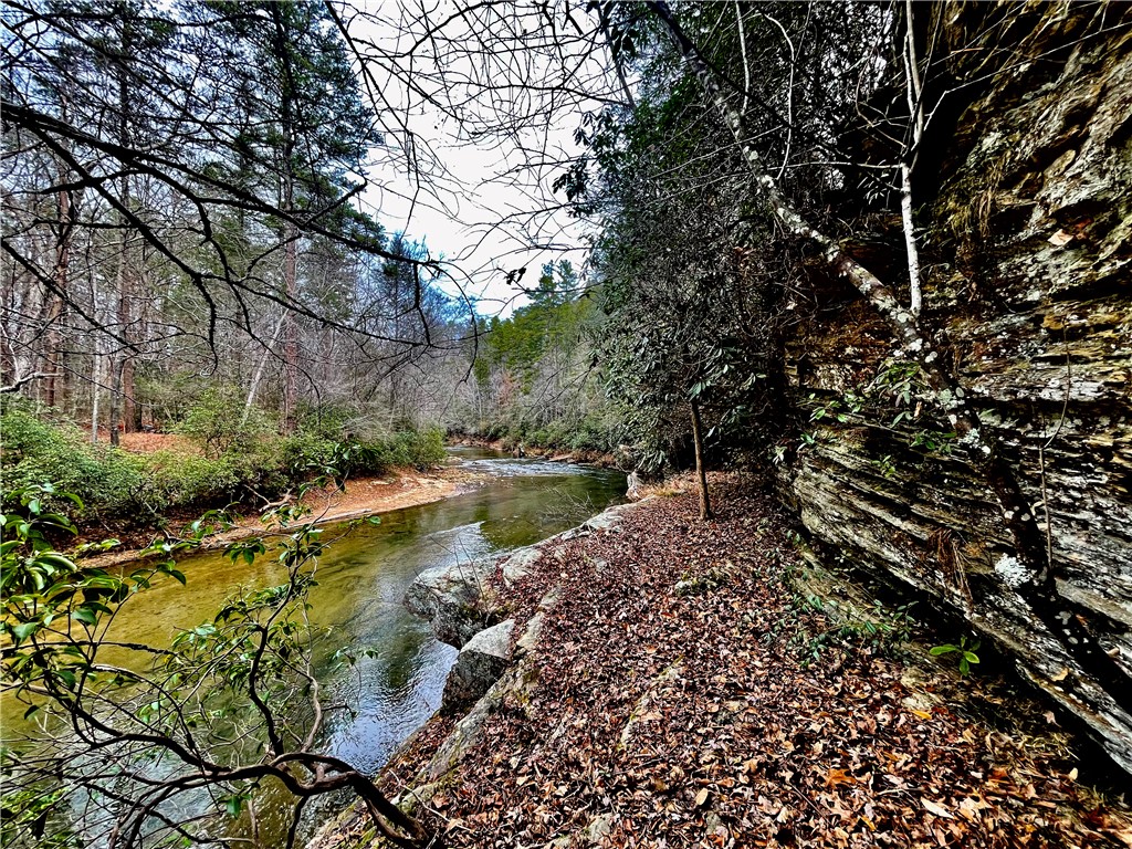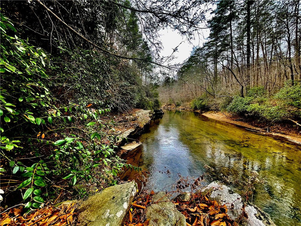 Situated on 7.99 unrestricted acres along the Chauga River, this exceptional property offers over 1,000 feet of river frontage and a rare combination of natural beauty, privacy, and versatility. A charming two-bedroom, one-and-a-half-bath hunting and fishing cabin, completed in 1998, serves as an ideal base camp or temporary residence while you build your riverfront dream home. The land features a remarkable variety of river settings, including a dramatic cliff face with a spring-fed waterfall flowing into the river, as well as expansive, level areas that provide excellent additional build sites just downstream from the existing cabin. Two established driveways allow for easy access and future expansion, making this property well-suited for multi-family or multi-generational use. Near the second build site, a dedicated fish-fry and gathering structure creates the perfect spot for hosting family, friends, and events along the fast-flowing river. Ideal for fishermen, hunters, whitewater kayakers, and outdoor enthusiasts, the property is extremely private and located near the end of a private road. Trails crisscross the land, with abundant mountain laurel, Oconee Bells, and mature hardwoods throughout. The cabin features a large open floor plan on the main level, a pantry and half bath, and a sun porch that opens to a screened porch with seasonal views up and down the Chauga. Upstairs are two bedrooms and a full bath. The cabin has propane gas heat, window A/C units, and a roof replaced in 2012, and the property is served by a drilled well with excess capacity for future expansion. Located close to Clemson University (35 minutes), Sumter National Forest, the Wild and Scenic Chattooga River, and all the great features Upstate South Carolina can offer. If you are seeking a truly unique river property offering privacy, multiple build options, and a beautiful mix of flat and rocky terrain, this is a must-see opportunity.