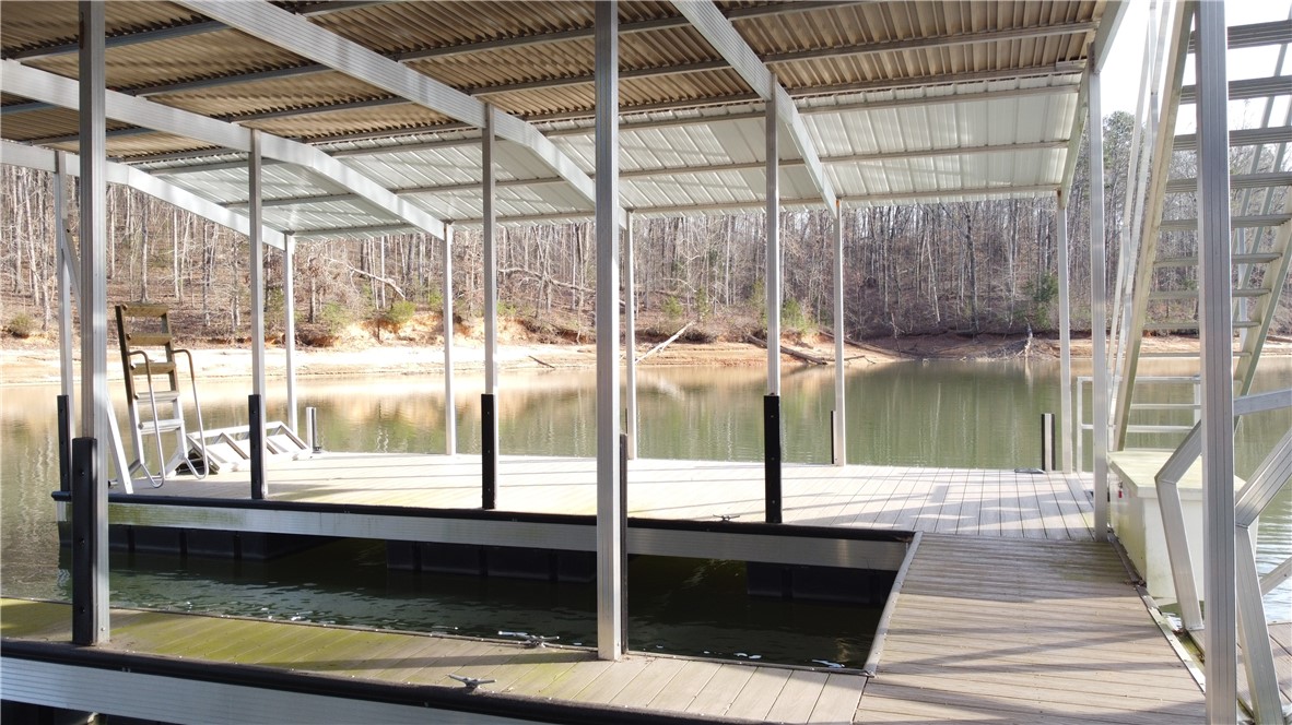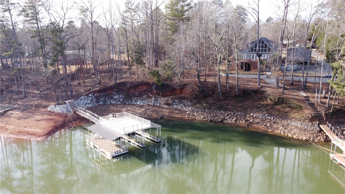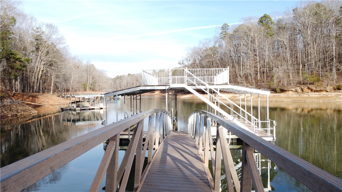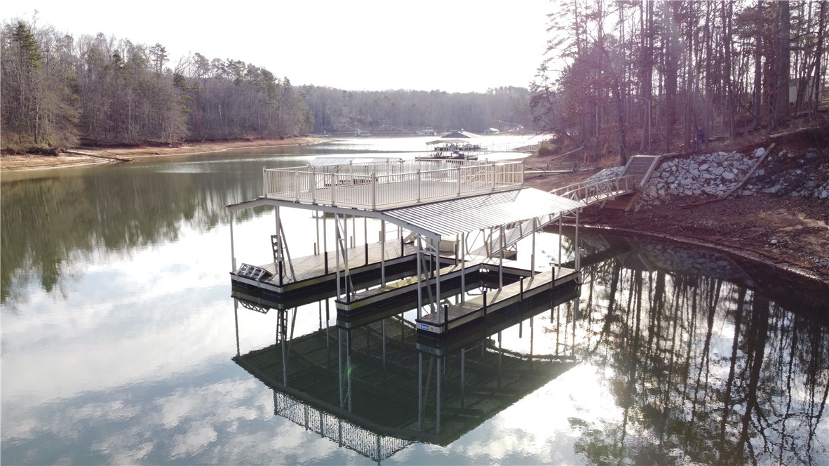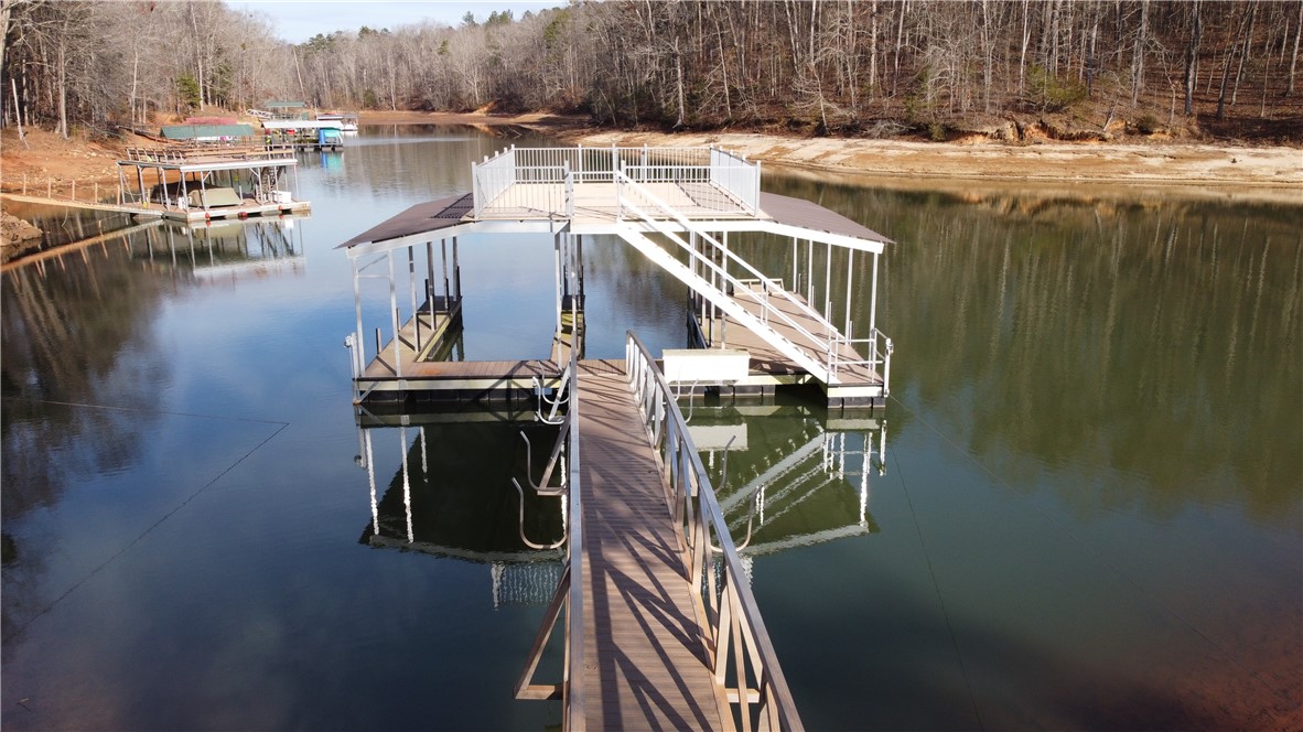 Fabulous opportunity to buy a lake lot with a Custom 36' x 30'-double slip-Aluminum Dock with a full sundeck and Gable Sides, that is only a few years old. Shoreline has already had Rip-Rap installed. When the lake is at full pool both boat slips have an estimated 15' of water depth. Super convenient location - located only 4 miles off of Hwy 85 with less then a 10-minute drive. Less then an hour drive to Greenville and just at 2 hours drive to Atlanta. The lot lays very gentle with a versatile build site that can accommodate many different build options, and the neighborhood restrictions have a minimum 1200 Square Foot requirement on the home. The restrictions look to make short-term renting your home an option. Owners have a current septic tank permit on file for upto a 5-bedroom home. The dock and shoreline upgrades to this lot exceed $100,000 so all the new owner has to do is focus on building their perfect home. The beach area and protection from the angle of the dock create a perfect swim zone for family and friends to spend their time down at the water safely making memories. Other bonuses on the dock include a Storage container-Ladder-Retractable in water bench.
