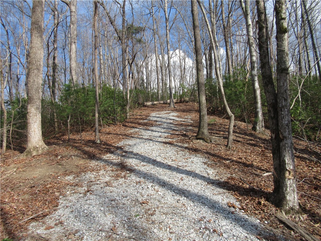 This wooded double lot in Gauley Falls is ready for construction. It offers overs acre of excellent winter views of Table Rock, Pinnacle and Sassafras mountains to the north, with the clearing on some trees a full-time view can be enjoyed. A gravel drive was just installed and a homesite roughed in. The lot has community water ($2500 tap fee), and power available at the road. Seller has had a perk test done, and was approved for a 4 Br home. Gauley Falls has light restrictions, such as no mobiles or modulars. Stick-built only with 1400 sq ft minimum. This lot is at the end of the road in the Cul-De-Sace and has good privacy.