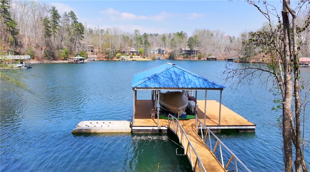 Enjoy the rare combination of protected waters and sweeping lake views along the shoreline of Lake Keowee, nestled within the prestigious The Cliffs at Keowee. Tucked inside a crystal-clear bay on the north end of the lake, this homesite offers both tranquility and easy access to open water—ideal for year-round enjoyment. Surrounded by mature hardwoods, the property provides a naturally private, picturesque setting with gentle shoreline appeal. A private, covered slip dock is already in place, complete with a jet ski lift—so you can step directly into the lake lifestyle from day one. Whether it’s quiet morning cruises, refreshing afternoon swims, or sunset rides across the water, every day here feels like a getaway. With no required timeline to build and the flexibility to bring your own builder, this property offers the freedom to create a fully custom lakefront retreat tailored to your vision. Design a home that reflects your lifestyle—whether that means relaxed family living, elevated entertaining, or a legacy getaway for generations to come—all set on one of the most sought-after bodies of water in the Southeast.
