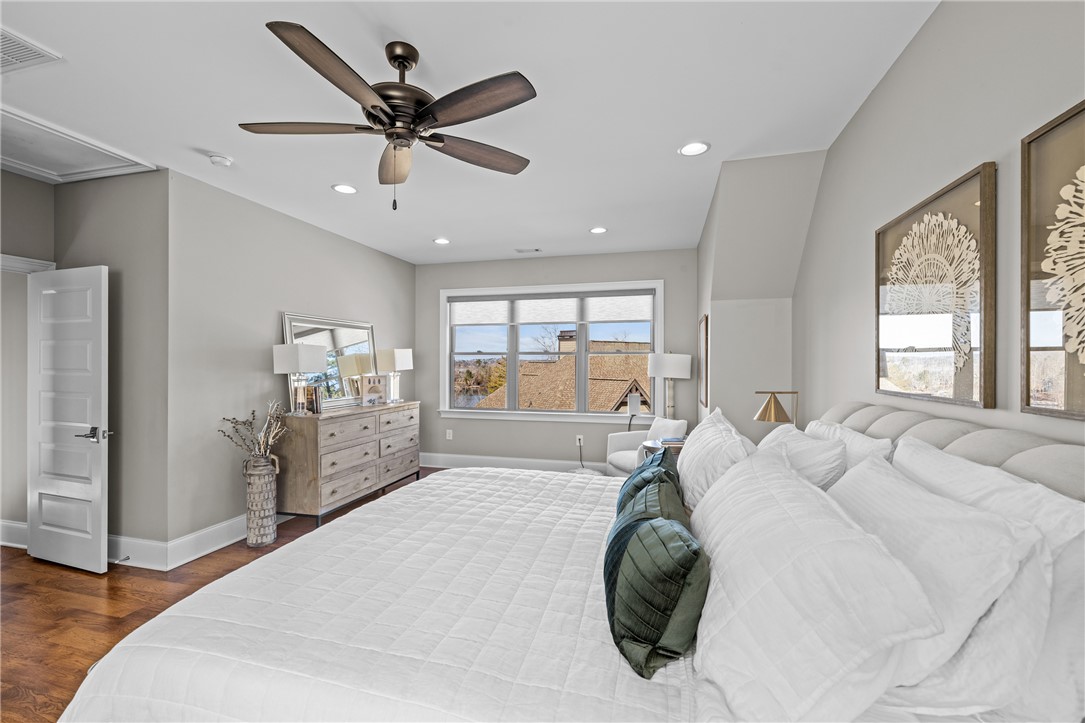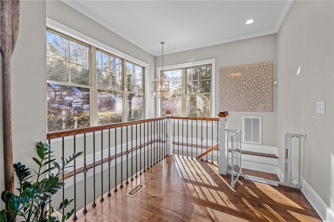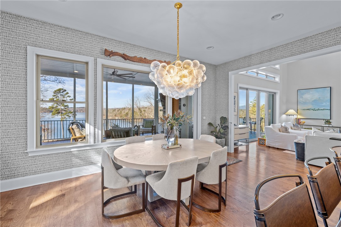 Commanding a premier position on a pristine .93-acre waterfront lot, in The Highlands on Lake Keowee. This custom-built residence delivers approximately 5,851 finished square feet of thoughtfully executed living space with 180-degree Lake Keowee, long-range lake views, and mountain views that stretch across three states. This 6-bedroom, 5 full bath, 1 half bath, two-story home exemplifies craftsmanship, scale, and strategic design—built to perform beautifully for everyday living and exceptional entertaining. A sweeping concrete drive descends through meticulously landscaped grounds, accented by a dramatic boulder rock retaining wall, curated lighting, and a custom staircase providing convenient pedestrian access to the road and mailbox. Generous parking leads to an oversized 3-car garage with mud sink, concrete wraparound pad, and direct front entry. The stone front porch, softened by ivy accents, introduces a warm Tuscan influence against classic white brick. Inside, the main level opens to a vaulted, open-concept living, dining, and kitchen space anchored by a floor-to-ceiling stone wood-burning fireplace with gas starter and expansive windows framing breathtaking lake vistas. The kitchen is a true centerpiece, featuring a center island, farmhouse sink, custom backsplash, granite countertops, Thermador range, steam oven, microwave drawer, pot filler, two dishwashers, abundant cabinetry, and a spacious walk-in pantry. Dining flows seamlessly to a screened porch overlooking the lake, complete with a floor-to-ceiling stone gas-log fireplace. Outdoor living is elevated with an immense screened deck offering a stone gas fireplace and TV hookup—an executive-level entertaining space with commanding lake and mountain views. Living spaces throughout the home are generously proportioned and flooded with natural light. Dual primary suites—one on the main level and one upstairs—provide flexibility for owners or guests. The upper-level primary suite includes a private screened deck, coffee bar with sink and refrigerator, and a spa-inspired Carrara marble bath with a stunning oversized shower. The upper level also hosts two additional bedrooms with shared bath, plus a substantial guest suite featuring window seating with storage, full bath, sitting area, office, and walk-in closet. The lower level is designed for leisure and utility, offering a family room with patio access, wet bar with wine cooler and ice machine, wine vault/safe room, and a private bedroom with full bath. Additional unfinished areas provide ample storage, second laundry hookups, a second dishwasher, and a full workshop with utility sink and direct backyard access. Outdoor amenities rival the interior: lake-fed irrigation, fenced backyard, dual screened porches, cart path and stone steps to the lake. Kroeger dock with 6,000-lb Carolina boat lift, dual EZ PWC ports, EZ-access ladder, underwater lighting, Bluetooth speakers, and high-speed fans. A lakeside firepit with Polywood Adirondack chairs completes the setting. Additional highlights include Wi-Fi-controlled thermostats, intercom system, hot tub, and commercial ice machine hookups in both pantry and garage. This is a Lake Keowee offering built with intention, legacy, and lasting value—where luxury meets operational excellence on the water.