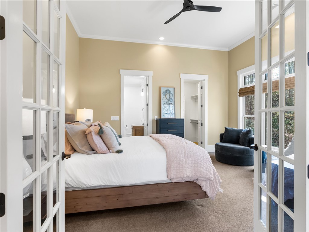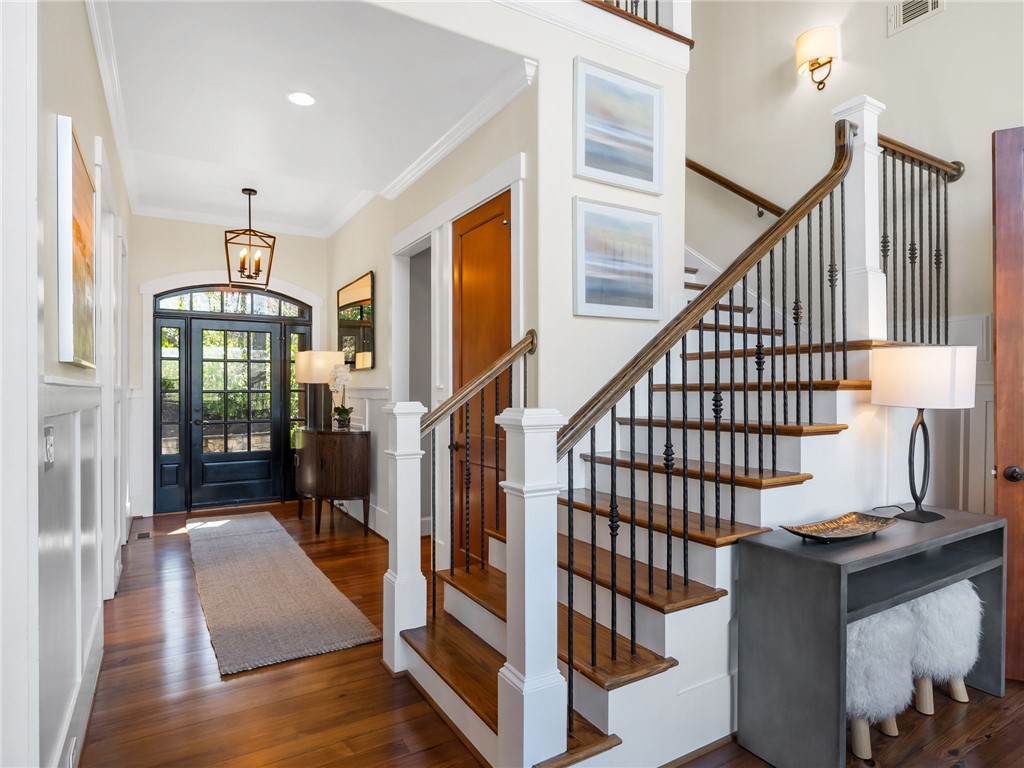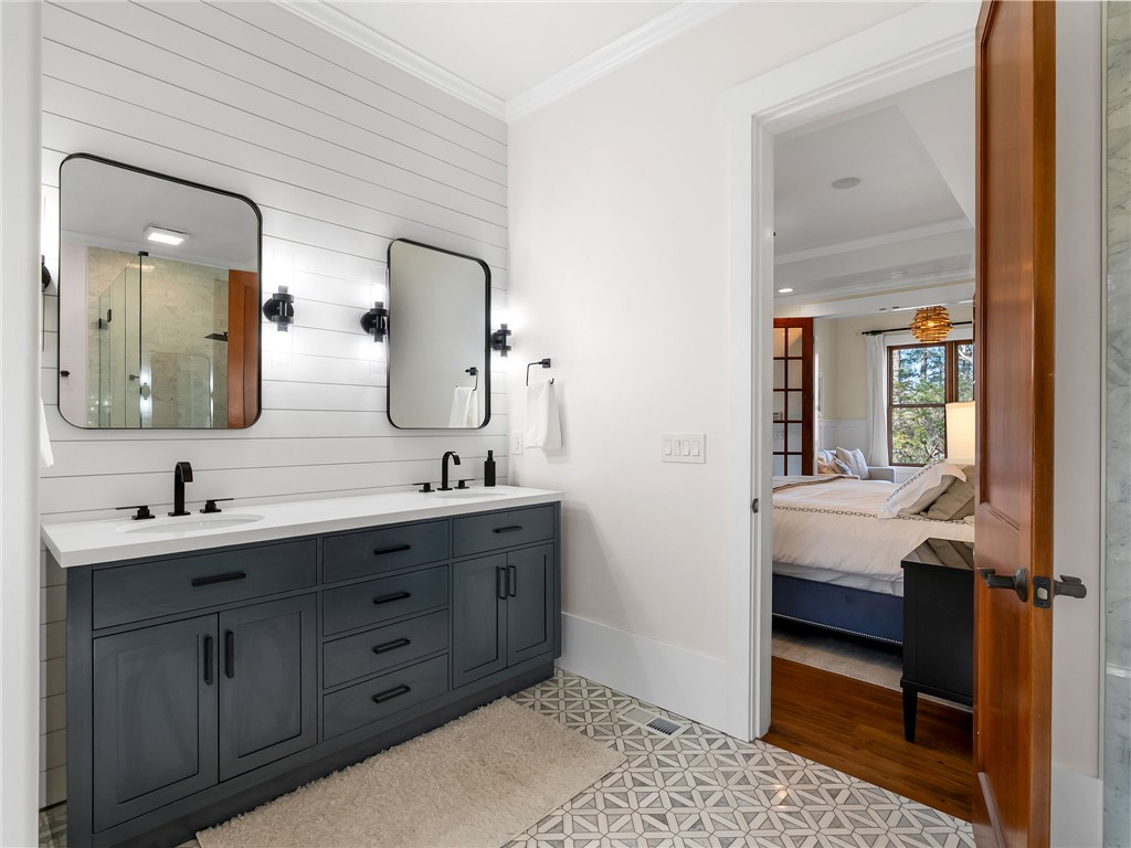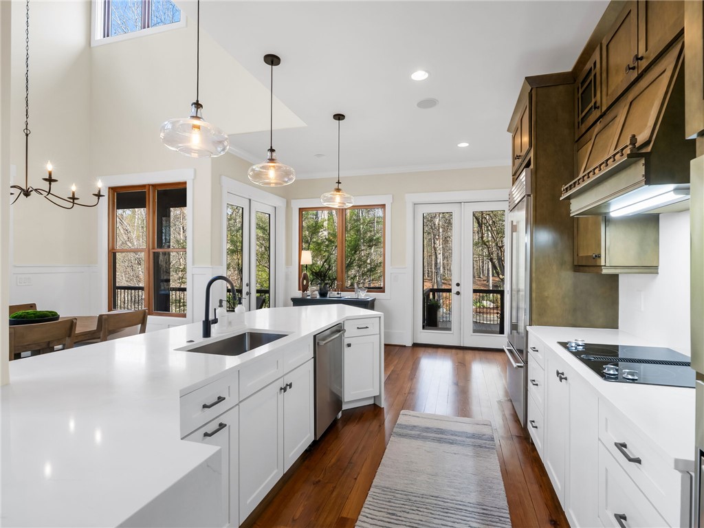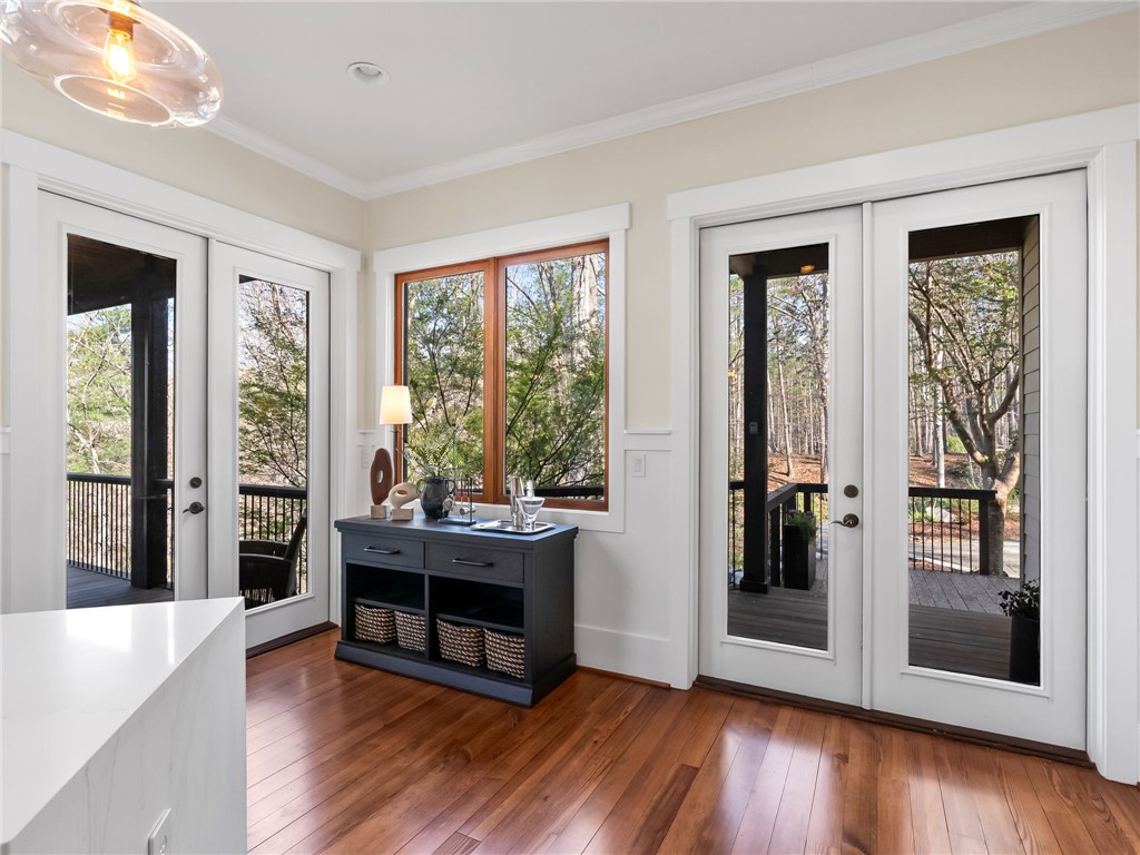 107 Fire Pink Court offers a rare combination of privacy, waterfront living, generous space for gathering, and close proximity to community amenities. Tucked into a serene, wooded setting within The Cliffs at Keowee Vineyards, this home is designed with versatility in mind – perfect for hosting guests or accommodating multiple families. The layout features expansive primary suites on both the main and lower levels, each complete with its own private sitting area behind French doors. With full kitchens on both levels, the home easily functions as two separate living spaces when needed. The upper level includes two additional bedrooms plus a large bonus room, while the lower level offers two additional bedrooms, a full service kitchen, and media room. The home also boasts completely remodeled entertainment areas, thoughtfully updated to enhance both comfort and functionality – creating inviting spaces ideal for gathering with family and friends. Outdoor living is a highlight, with two spacious porches overlooking the natural surroundings and a paver patio that creates an ideal setting for relaxing evenings. The dock, as well as the direct lake access from the property, combine to create an easy transition to your boat, watersports, and summer days on Lake Keowee. Inside, the home showcases warm, inviting finishes such as pine flooring on the main level, oak staircases, detailed wainscoting, and soaring wood ceilings. Large windows bring in abundant natural light and capture peaceful lake views throughout. Being sold fully stocked and furnished, this home offers a true turnkey opportunity. Located in the gated community of The Cliffs at Keowee Vineyards, you will enjoy convenient access to exceptional amenities, including a beautiful clubhouse (4 min drive), a Tom Fazio-designed golf course (4 min drive), a newly updated wellness center, pool, full-service marina (6 minute drive), and equestrian facilities. This property presents an outstanding opportunity to enjoy lakefront living in one of Lake Keowee’s most desirable communities – at a price point that’s sure to impress. A club membership at The Cliffs is available for purchase with this property giving you access to all seven communities.